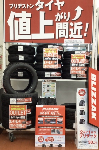 タイヤ館岩国のHPをご覧いただきありがとうございます。本日はブリヂストン冬タイヤ価格改定のお知らせです。