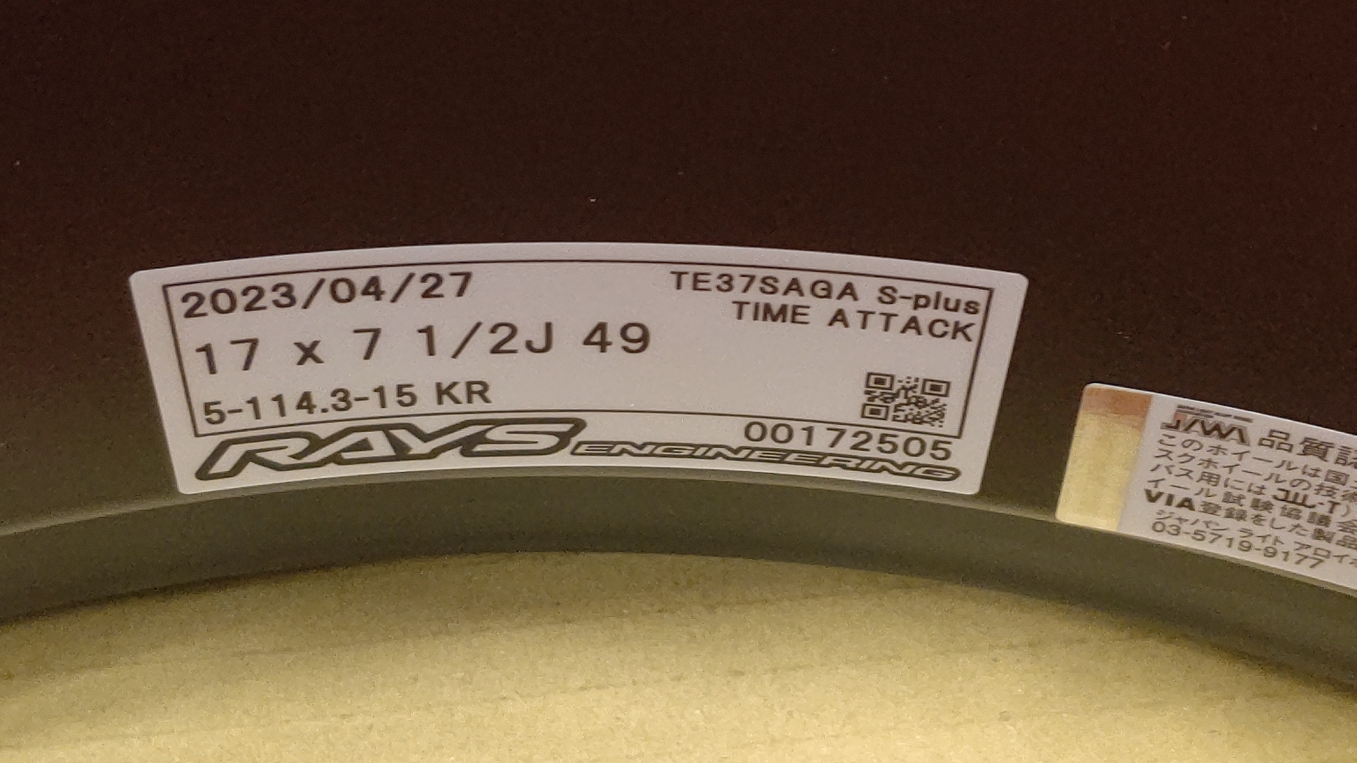 人気のホイールメーカー、レイズのTE37 SAGAの限定品が現在展示品としてあります。