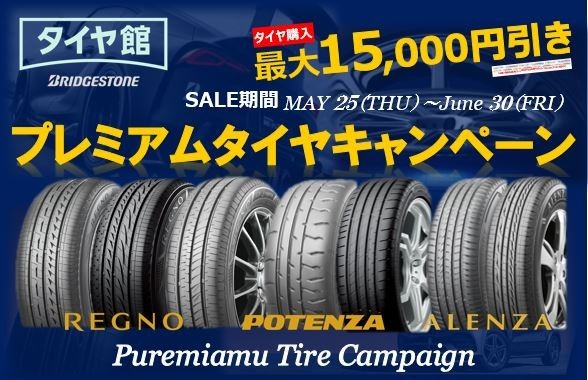 「REGNO」「POTENZA」「ALENZA」など人気のタイヤキャンペーンです(^^)/