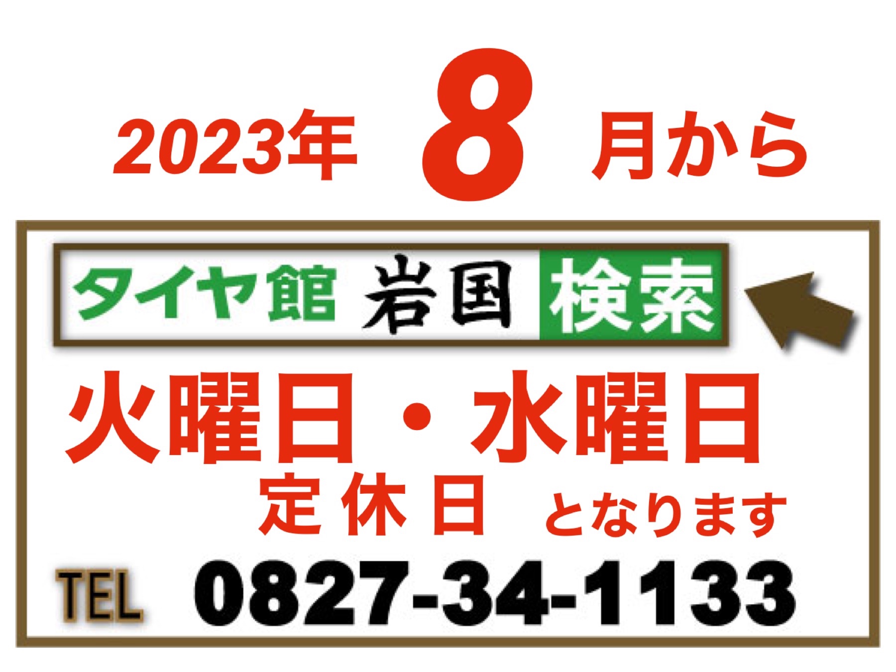 8月から 火 曜・水 曜 が 定 休 日となります。