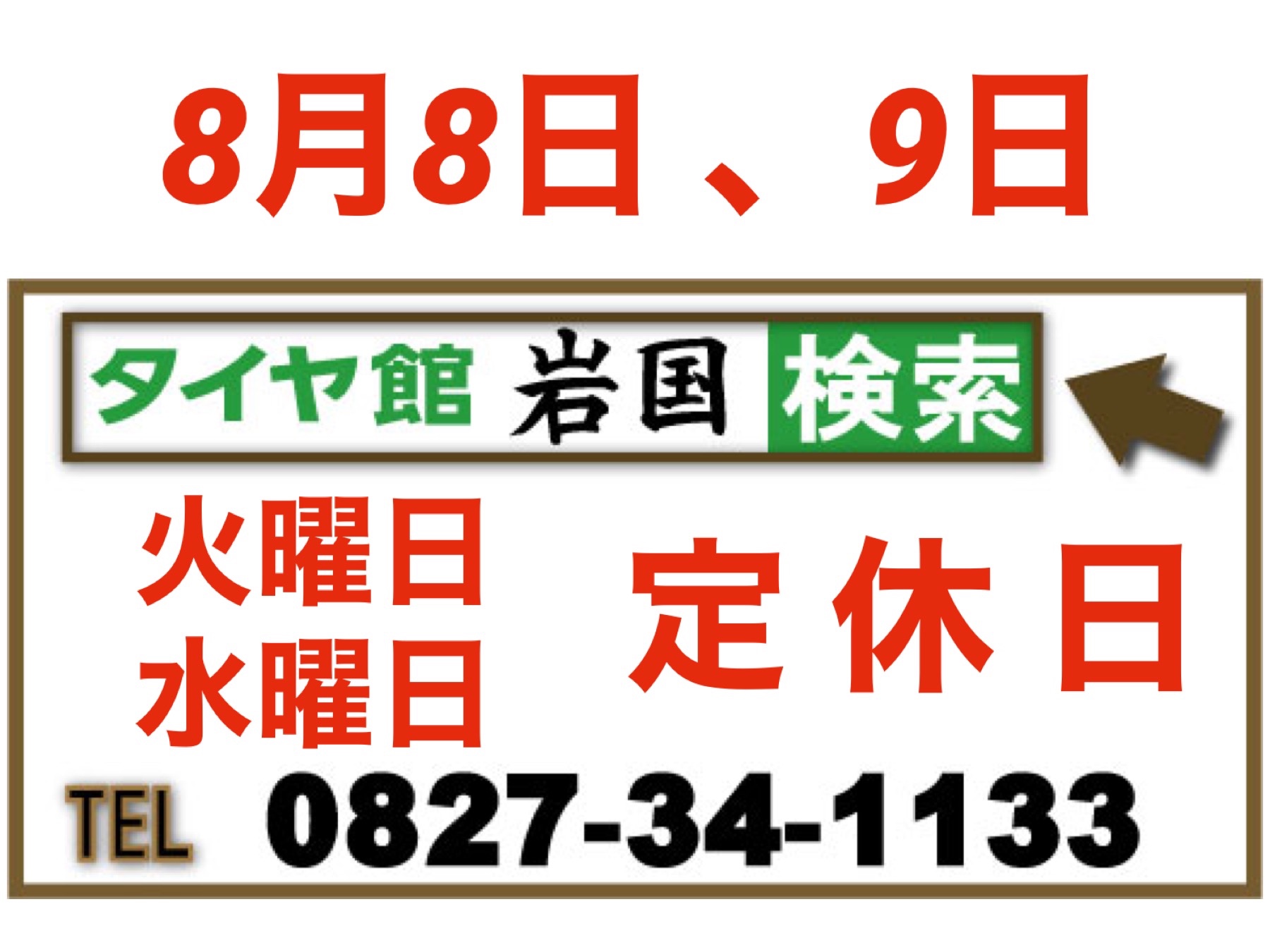 8月8日 火曜日 9日 水曜日 定 休 日 と な り ま す