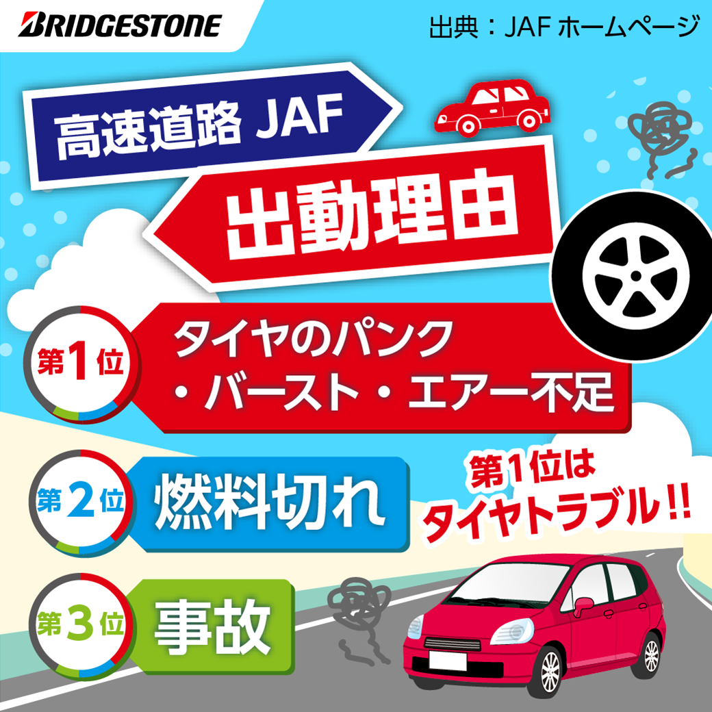 お出かけ前のタイヤ点検(空気圧・残溝・キズ有無確認)を