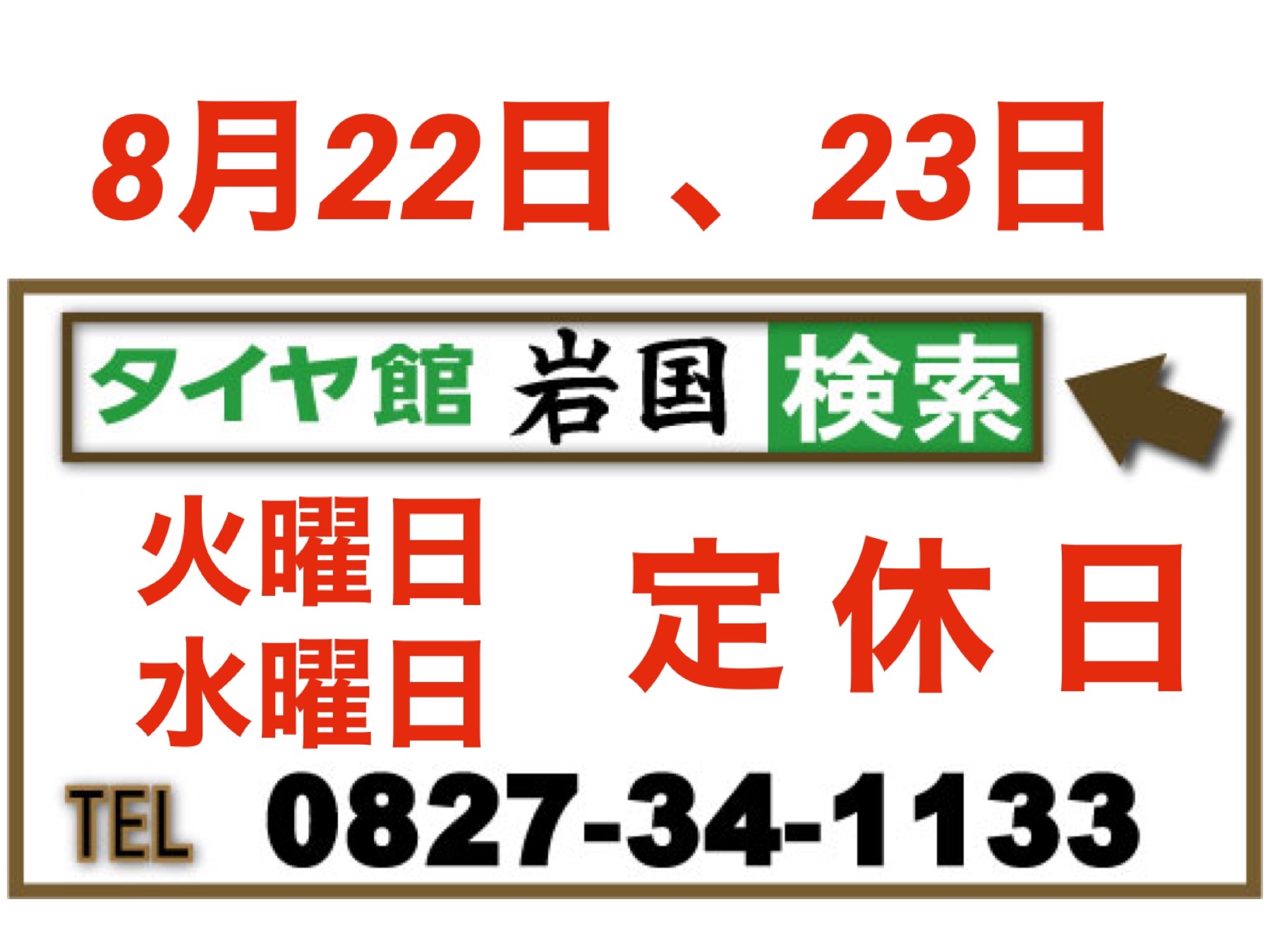 8月22日 火曜日 23日 水曜日 定 休 日 と な り ま す