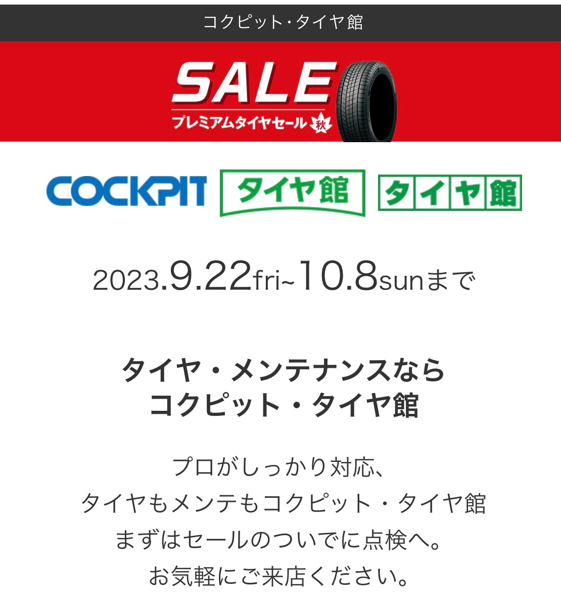 10月8日 本日最終日です★ プレミアムタイヤセール開催中