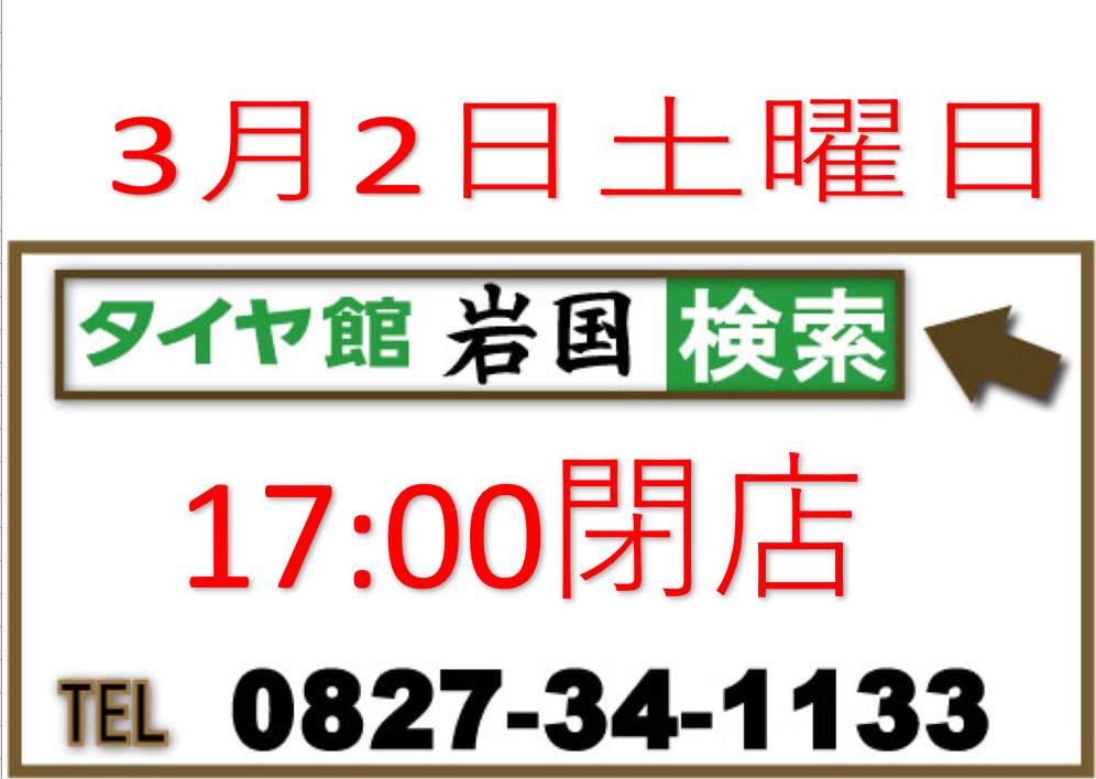 3月2日の土曜日は社内研修の為17時閉店になります。
