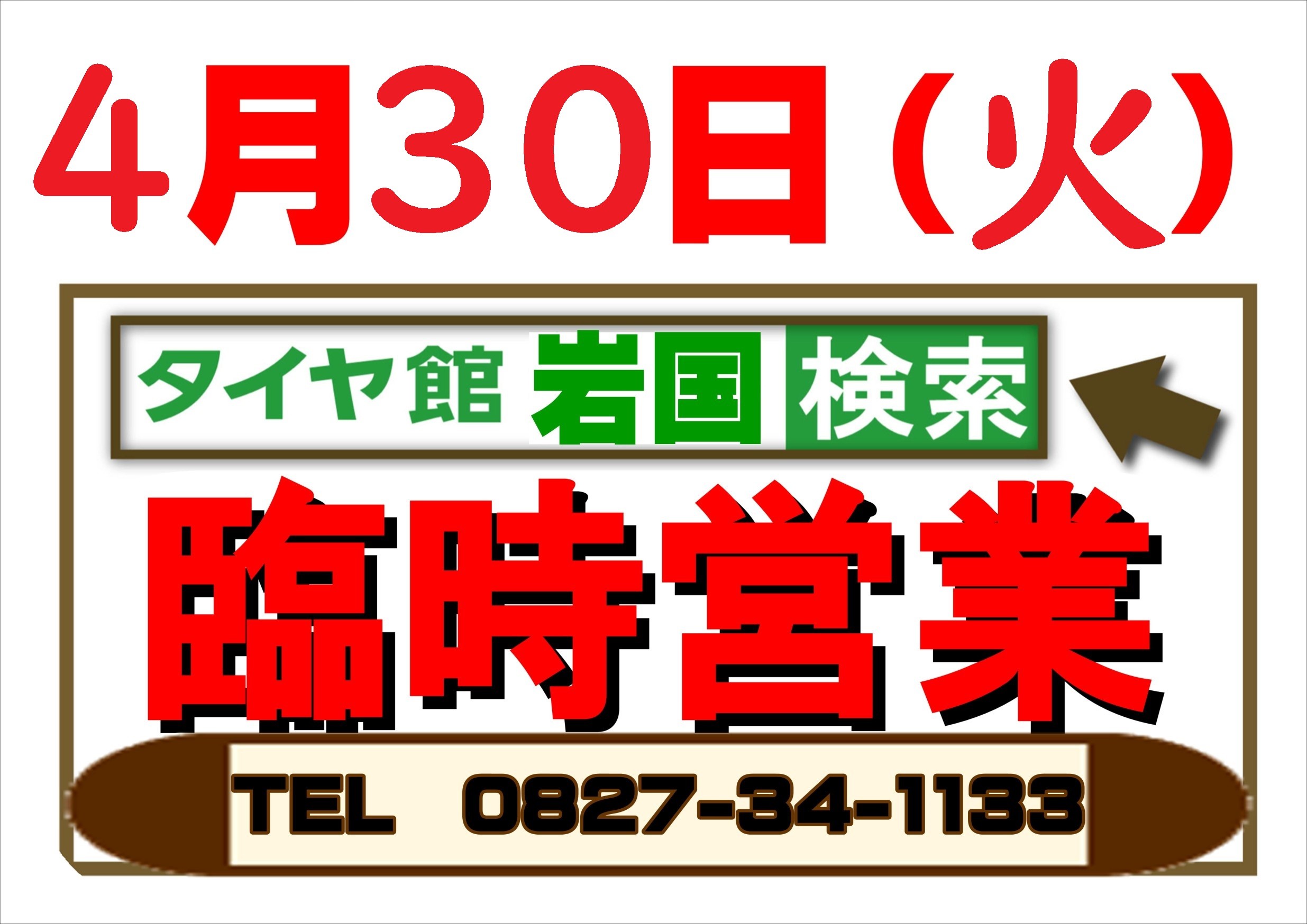 4月の臨時営業日のお知らせになります。