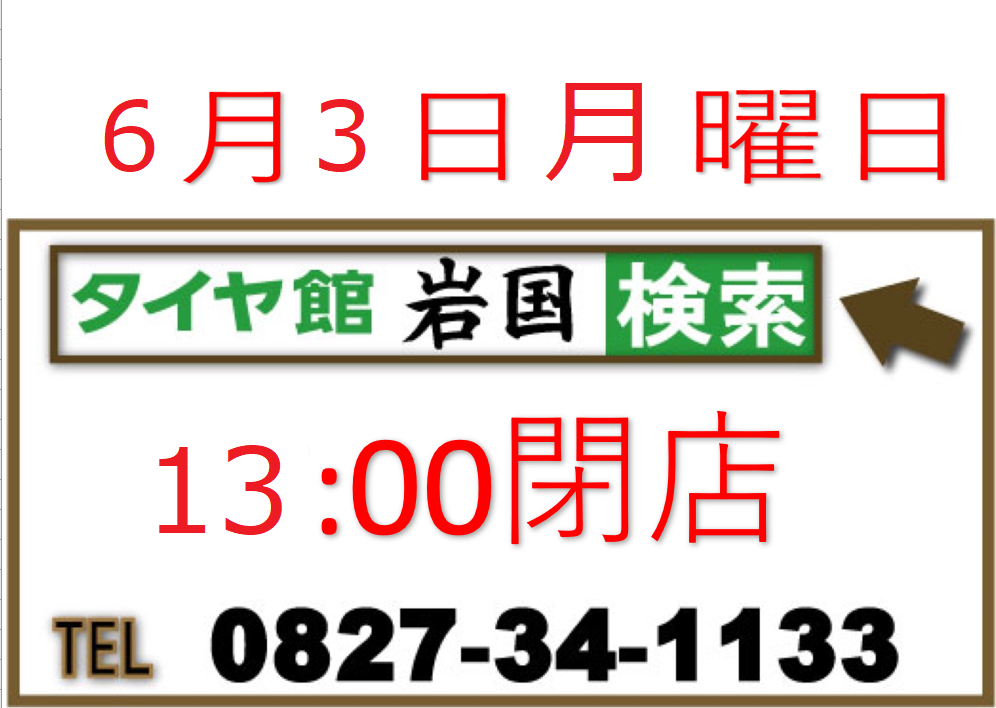 6月3日の月曜日は棚卸業務の為13時閉店になります。