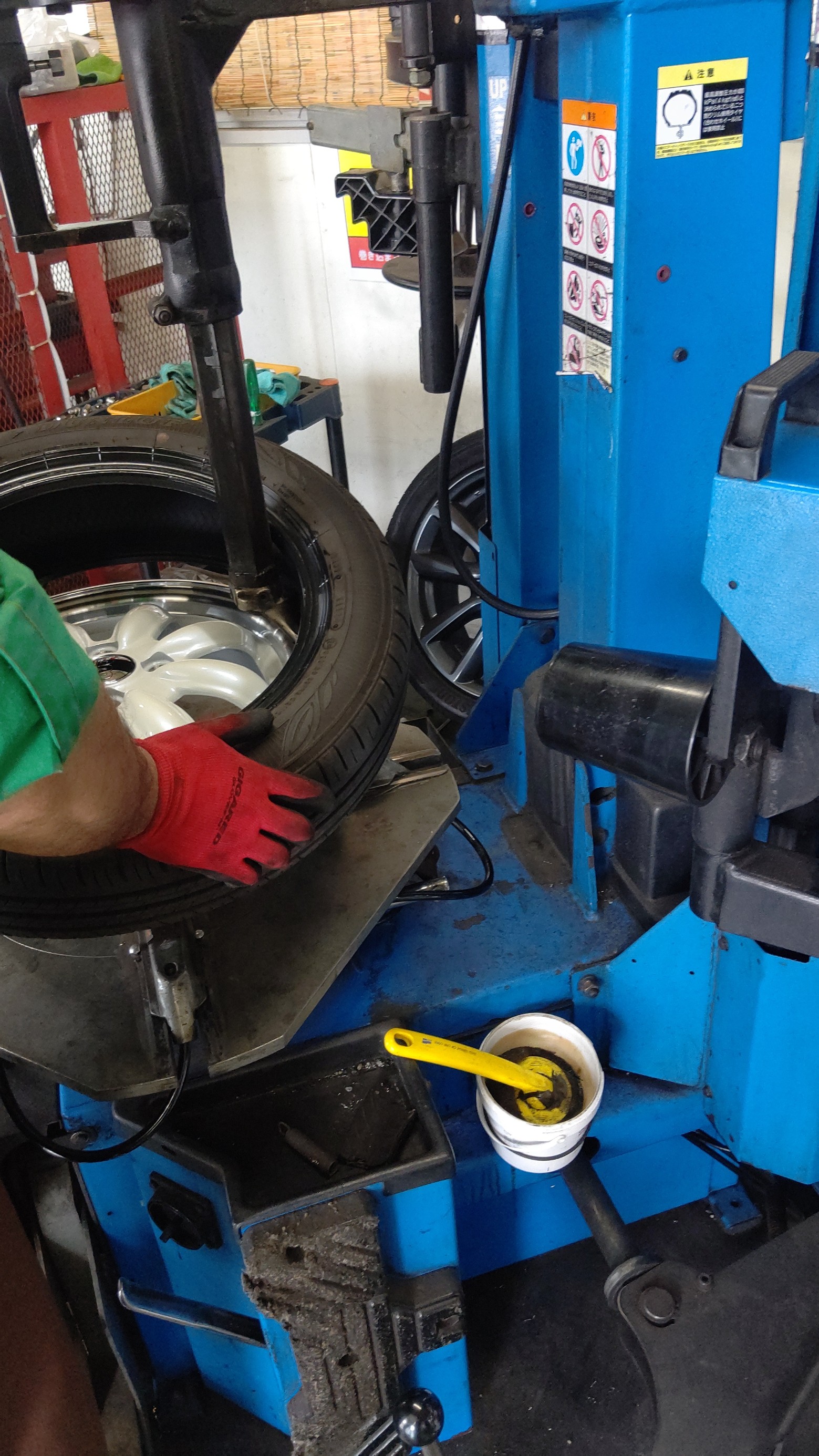 そのまま新しいホイールに今までのタイヤを組み付けしていきます。