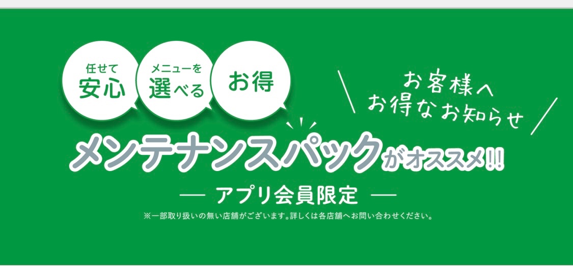 タイヤ館では、ご利用のお客様でいつでも誰でも加入出来る【メンテナンスパック】があります!