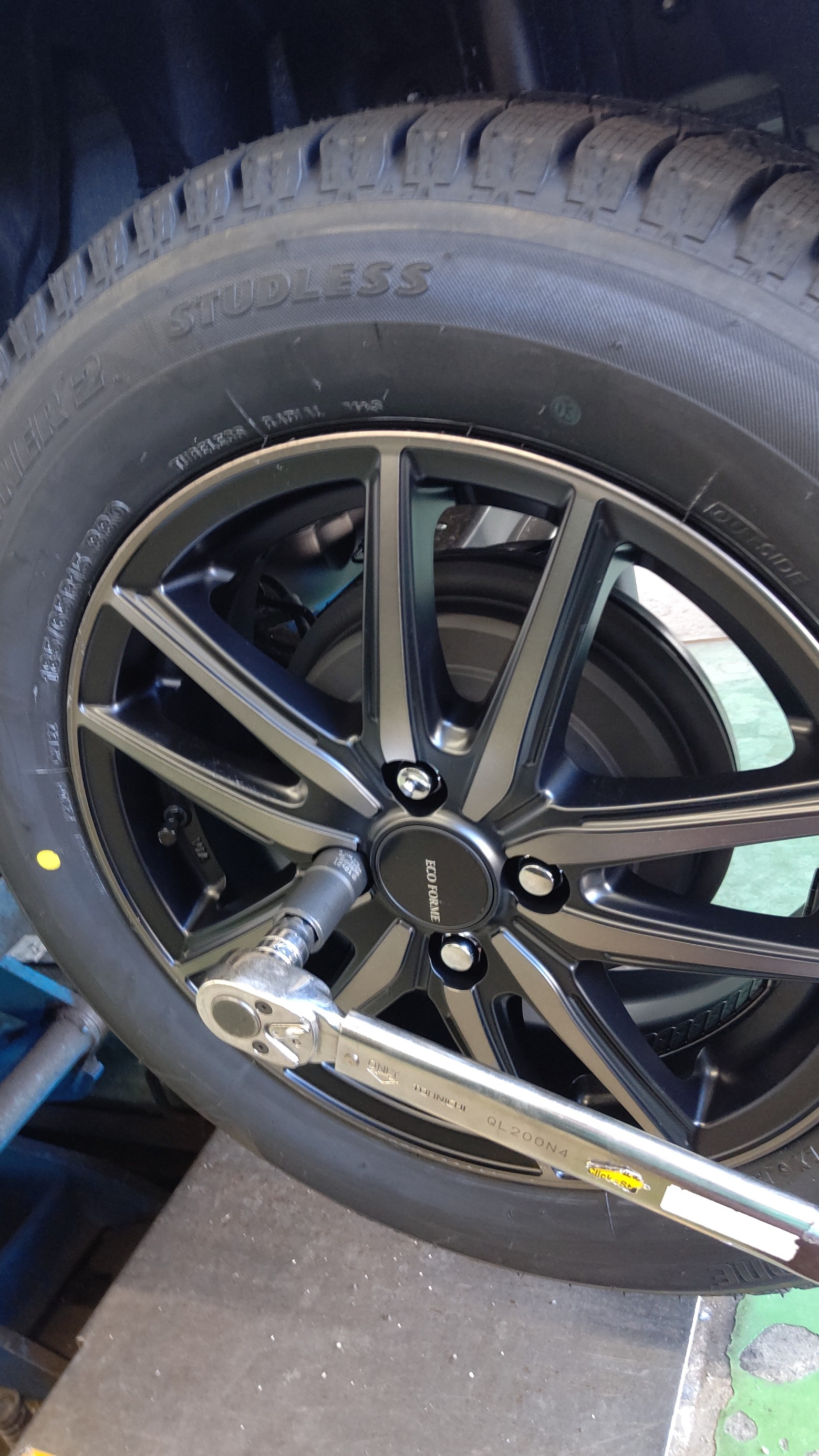 今回はお電話で問い合わせをくださったお客様からの依頼でスタッドレスタイヤとホイールセットの購入取付作業をさせていただきました。