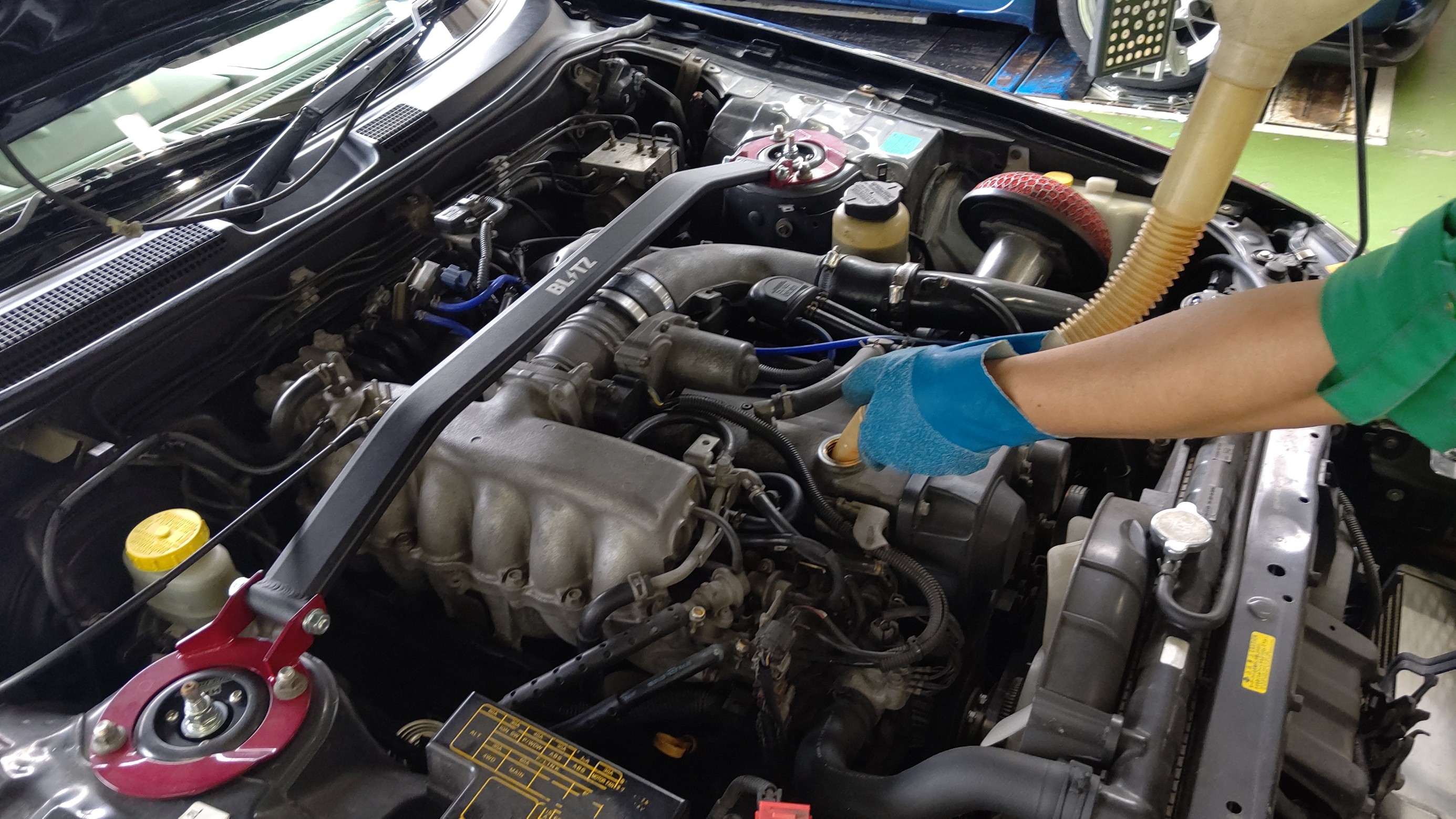 タイヤ館岩国で、日産 スカイライン ER34にニスモのエンジンオイル交換作業をさせていただきました。