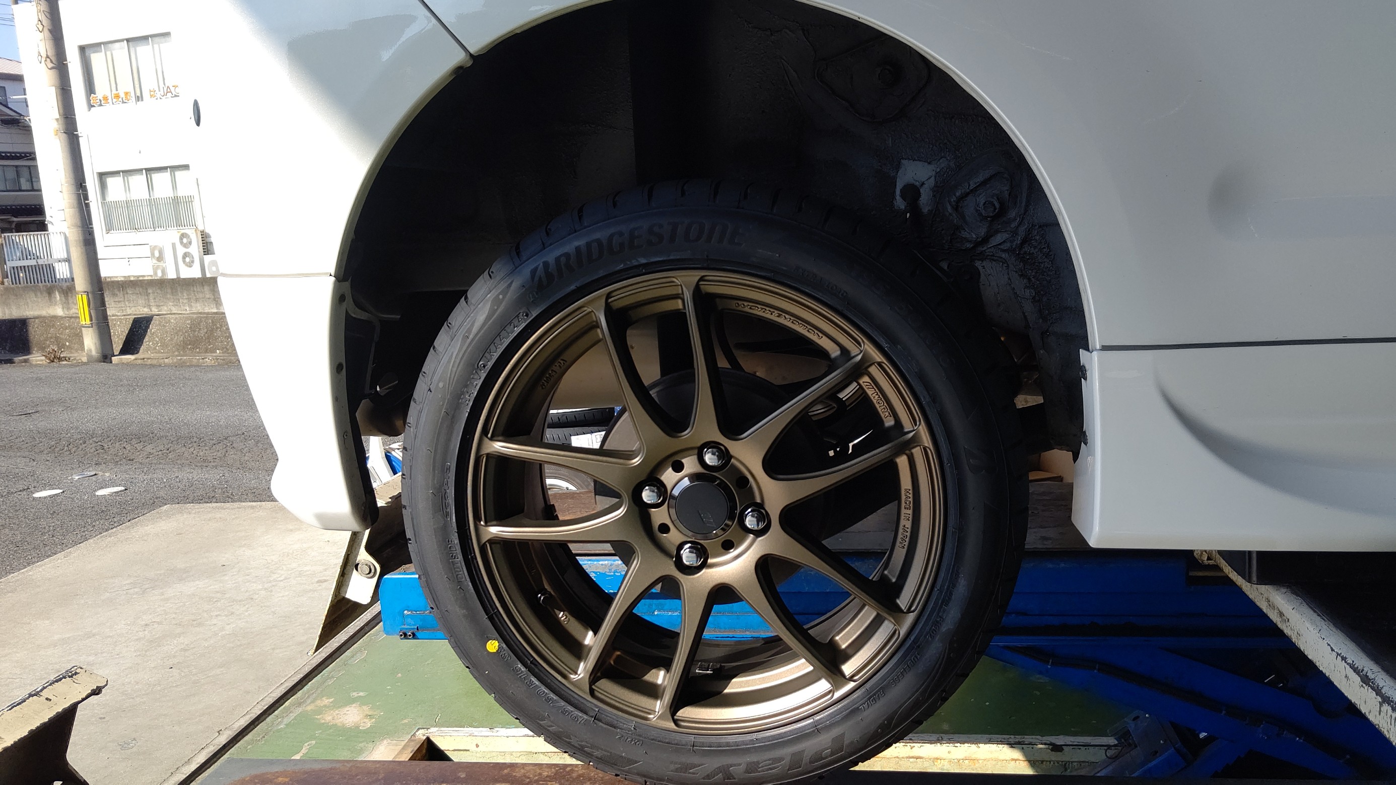 さっそく今までのタイヤとホイールを取り外して新しいタイヤ+ホイールを取付していきます。