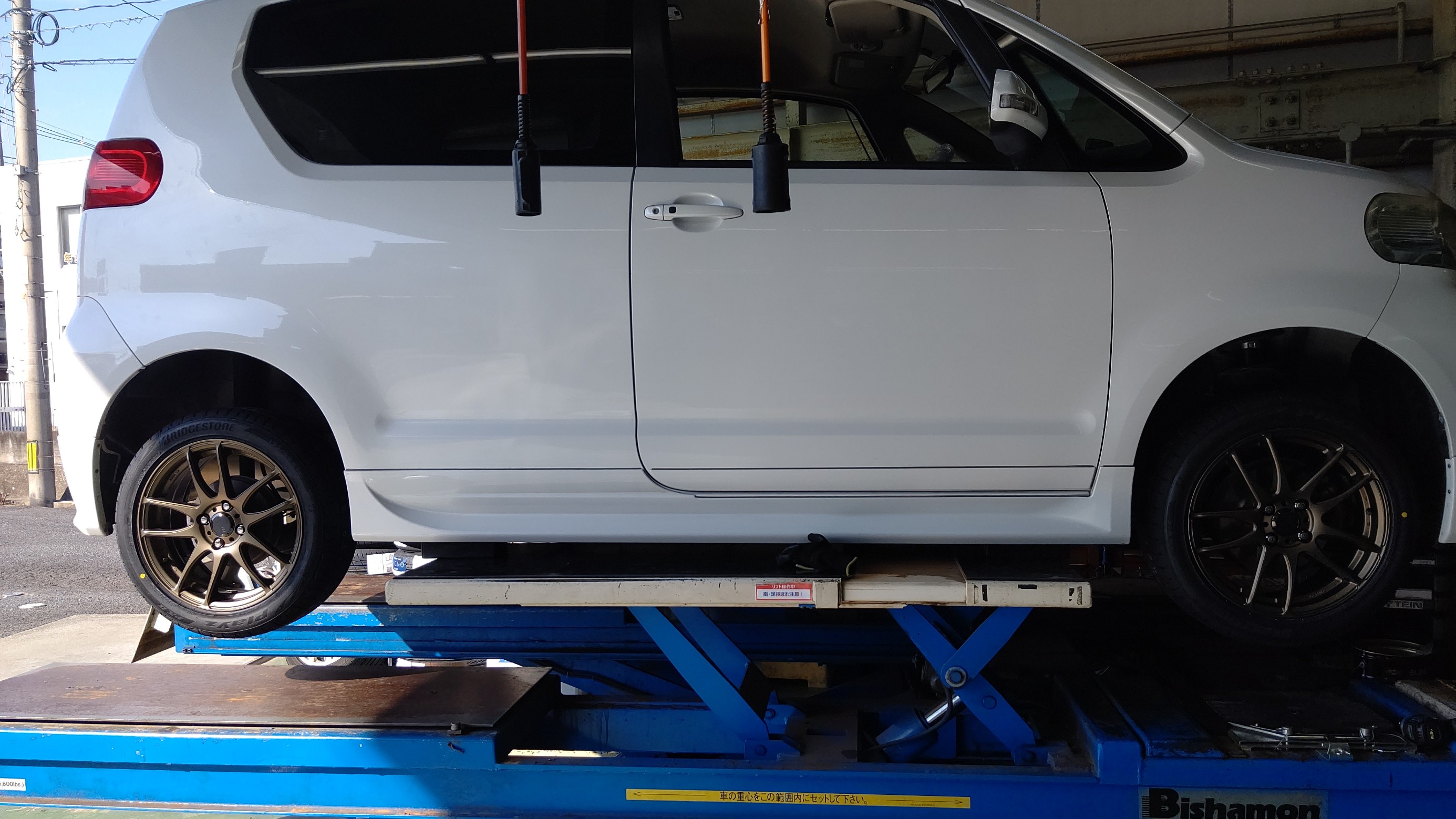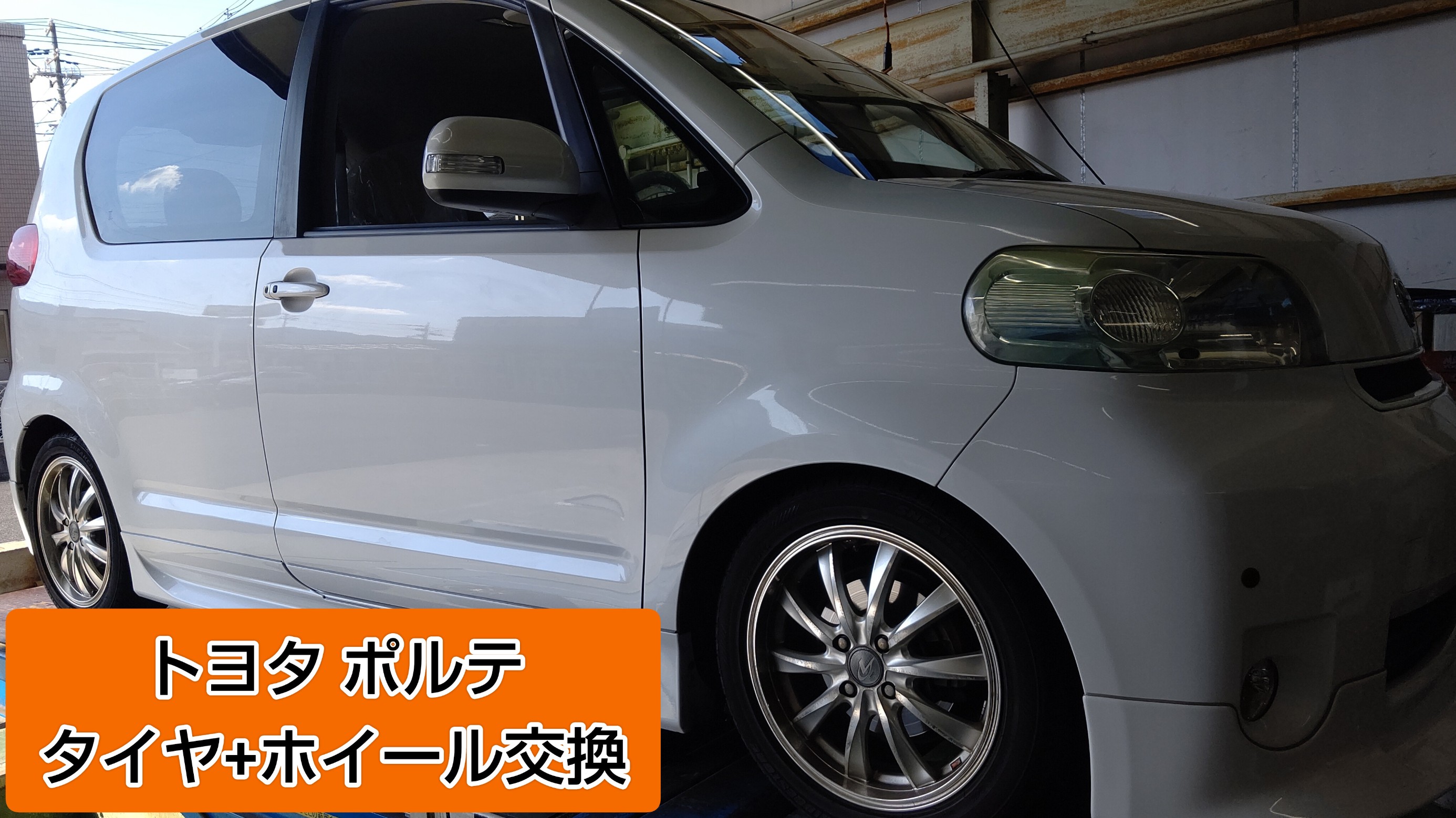 今回は初めて来られたお客様からの依頼でトヨタ ポルテに新しいタイヤとホイールを販売取付作業をさせていただきました。