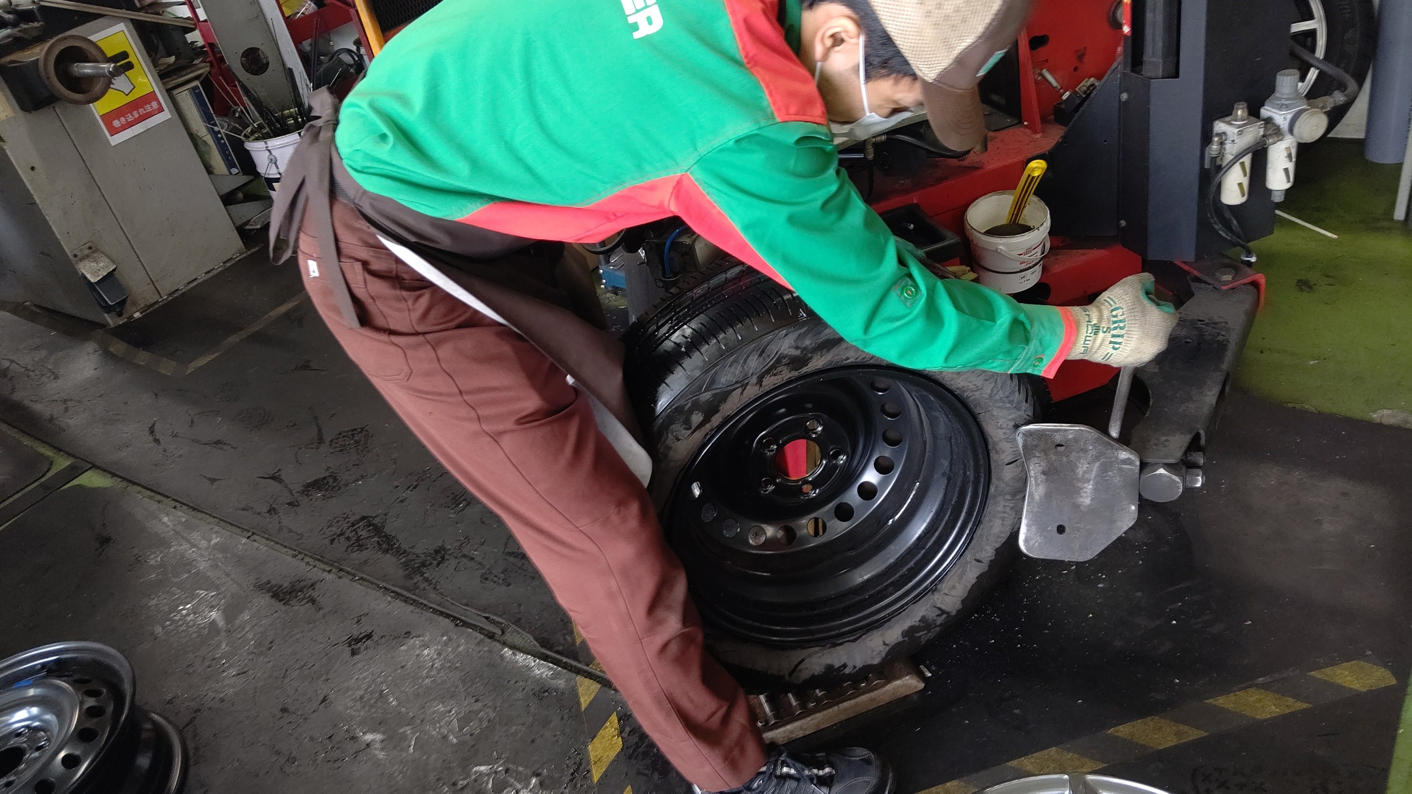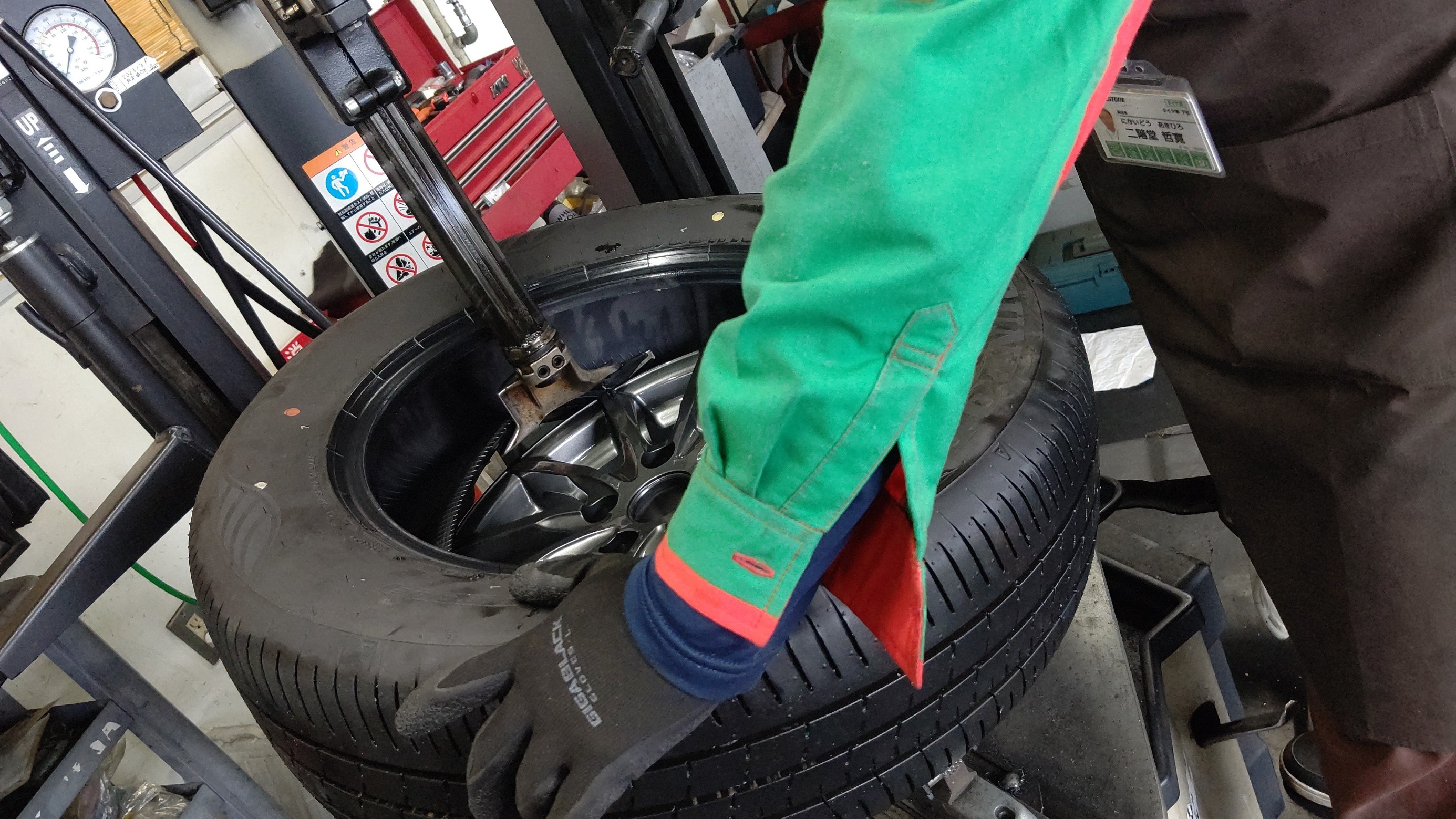 今までのタイヤを使って新しいホイールに組み付けしていきます。