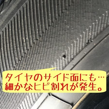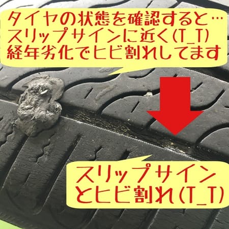 タイヤの状態を確認すると…溝がスリップサインに近く