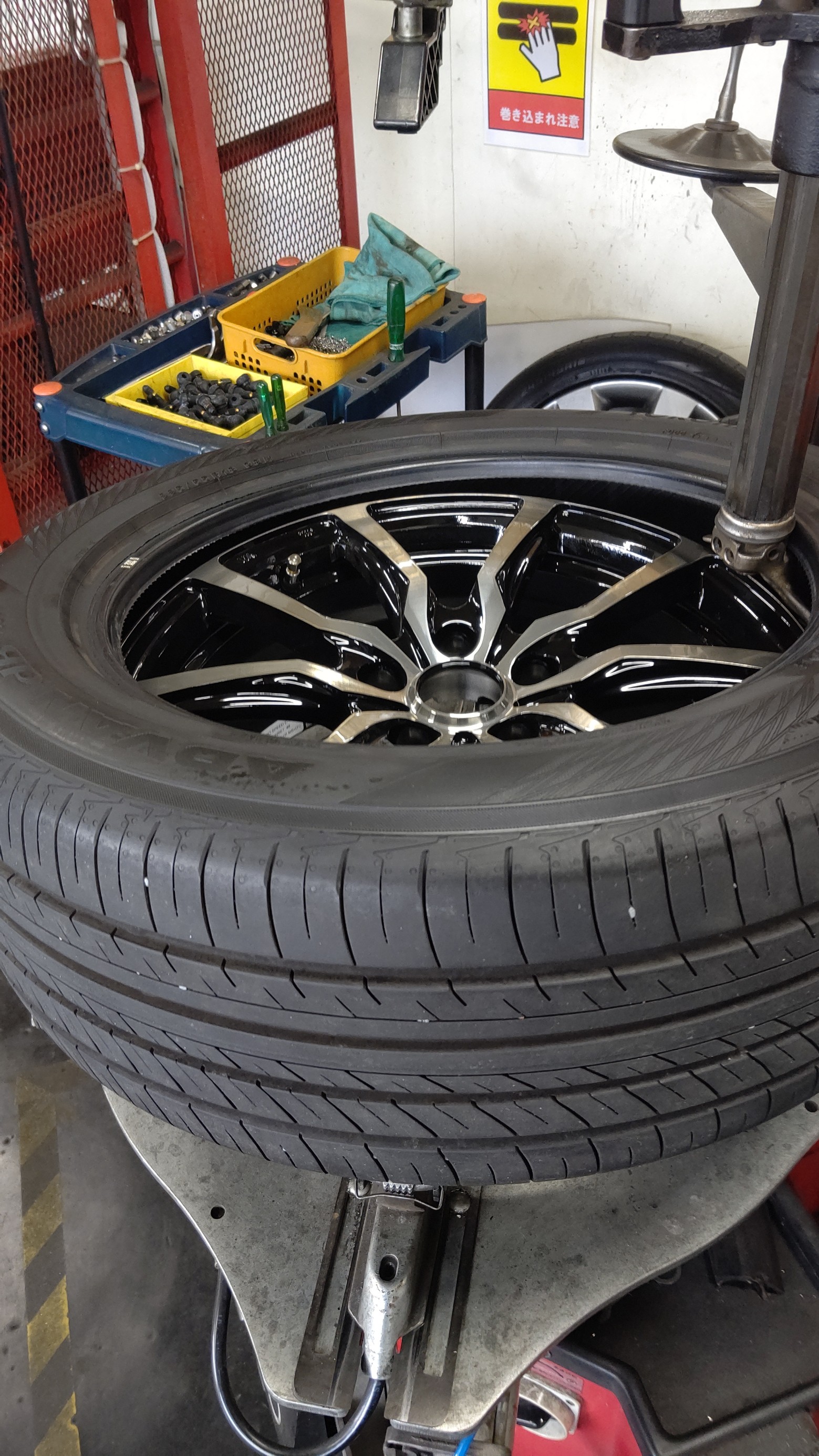 空気圧を充填しバランス調整をして取付作業をしていきます。