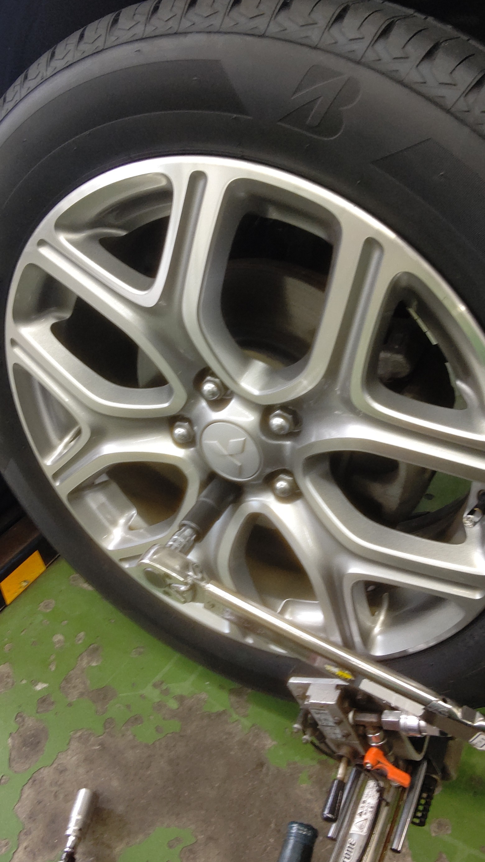今回は、いつもご利用されている三菱 アウトランダーPHEVのお客様からの依頼でスタッドレスタイヤからの履き替え作業に新品タイヤへの購入取付作業とアライメント測定調整作業をさせていただきました。