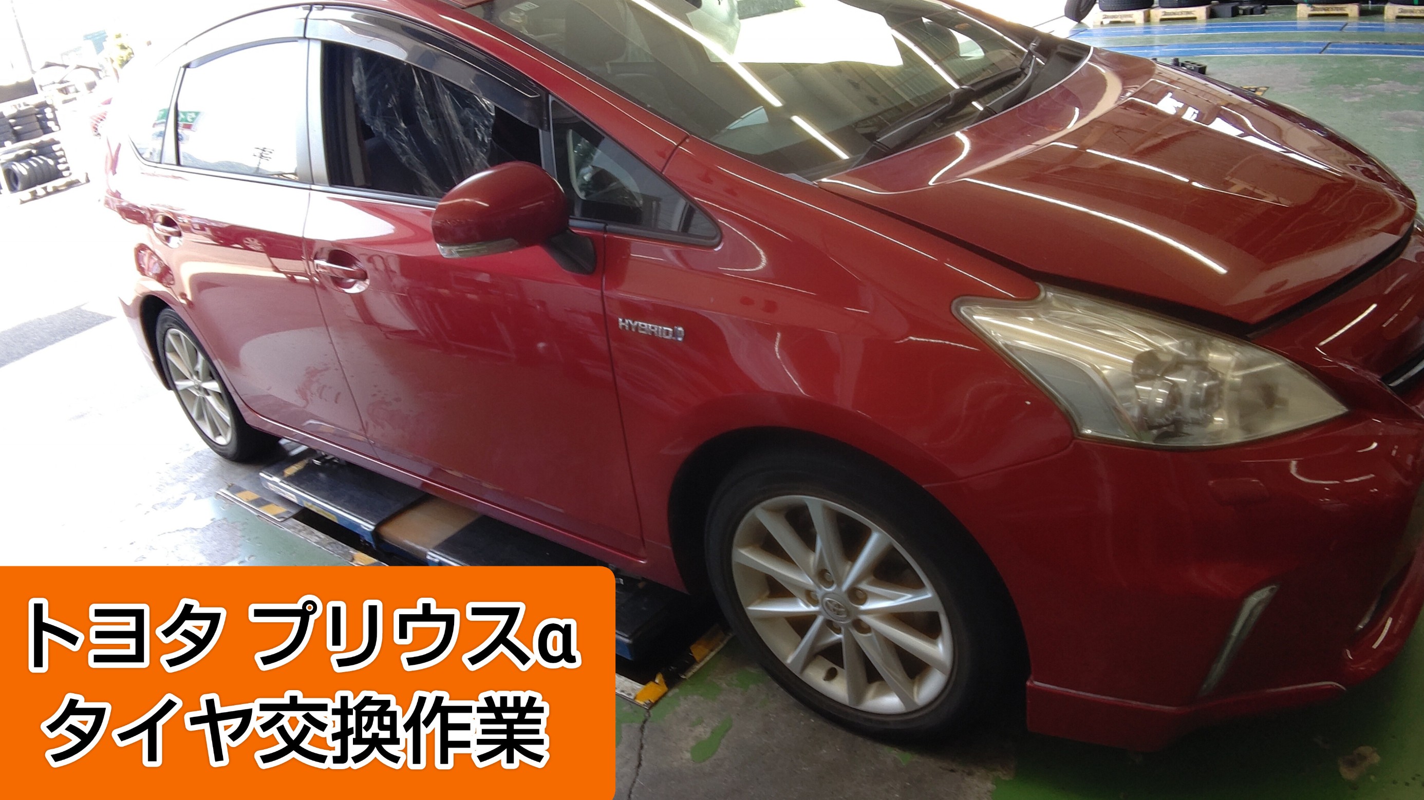 今回は、初めて来られたトヨタ プリウスアルファのお客様からの依頼でタイヤ購入取付作業をさせていただきました。