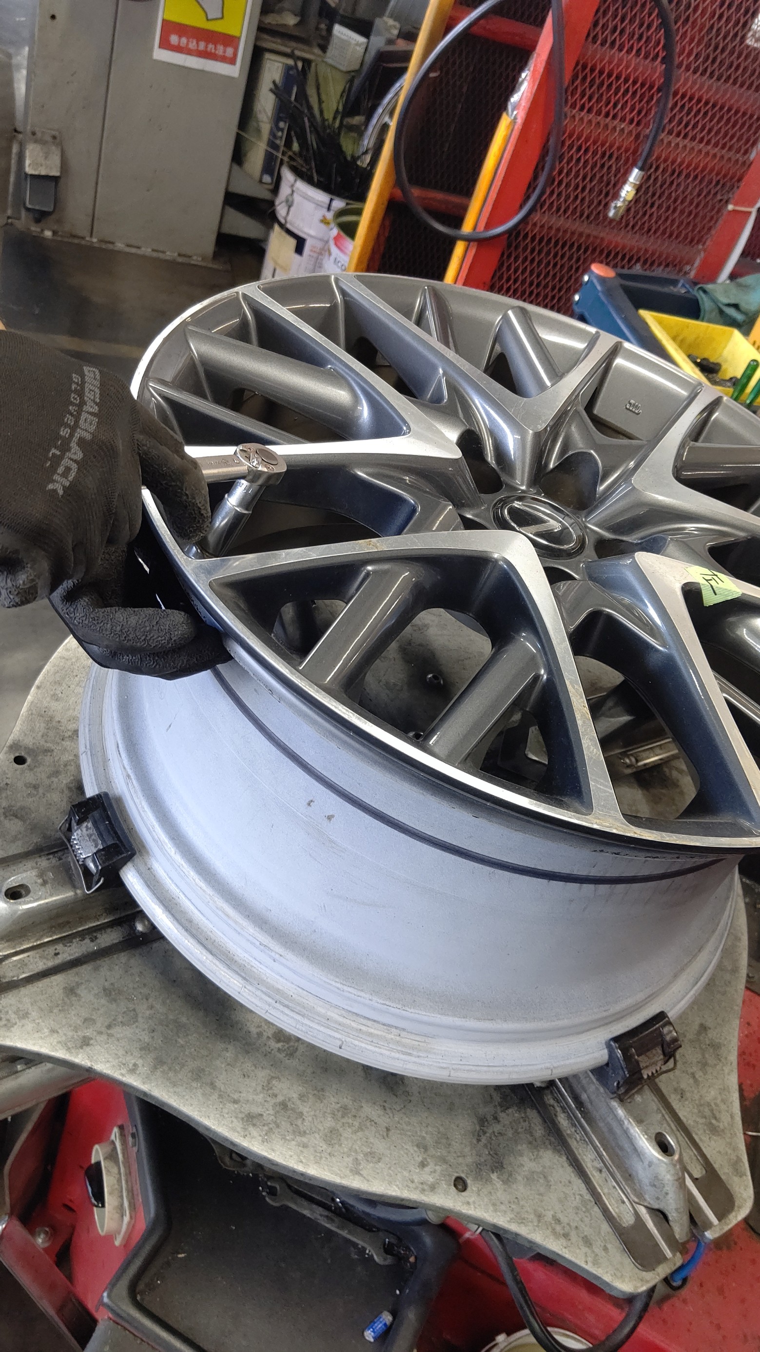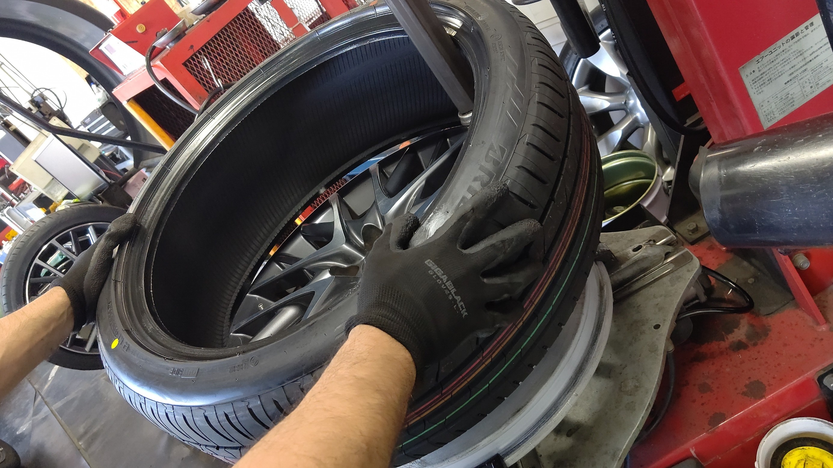大きなタイヤサイズなのでいつもより慎重に作業を行っていきます。