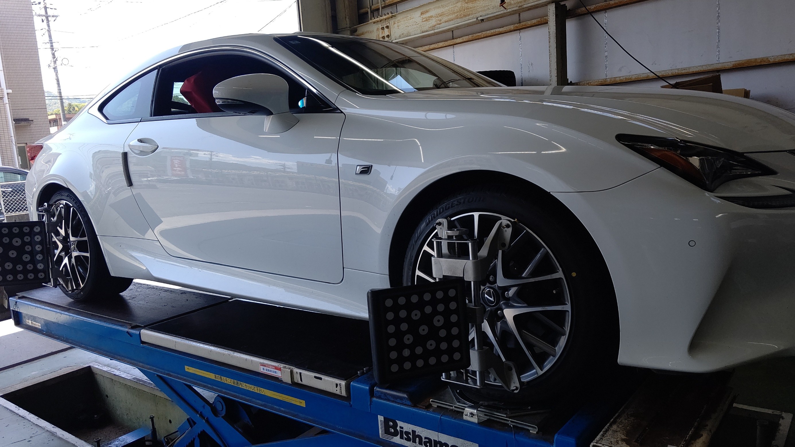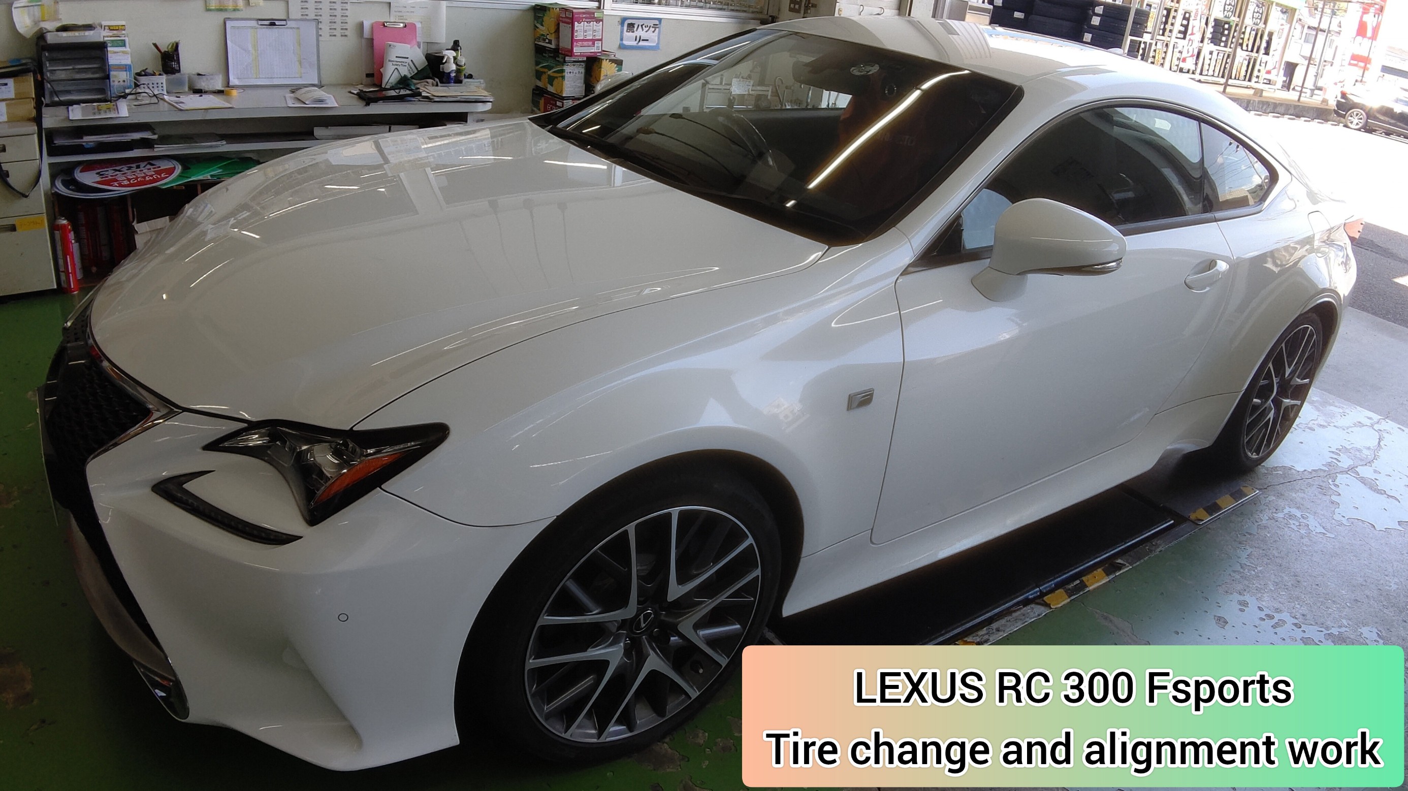 タイヤ館岩国で、レクサス RC300 Fスポーツのタイヤ購入取付とアライメント測定調整作業をさせていただきました。