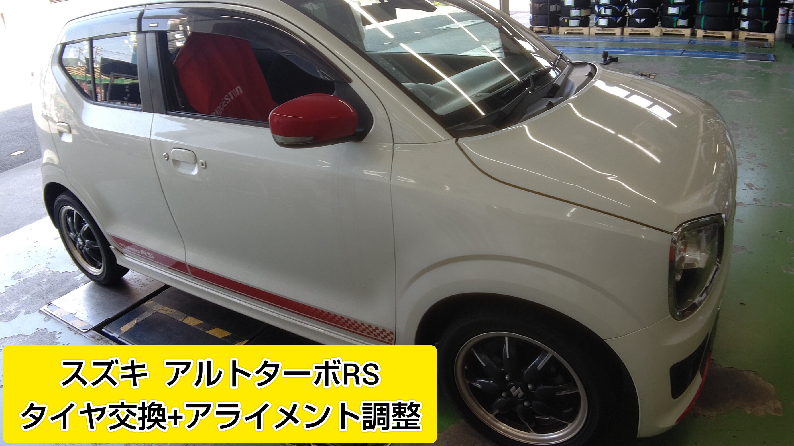 タイヤ館岩国で、スズキ アルトターボRSのタイヤ購入取付作業とアライメント測定調整作業をさせていただきました。