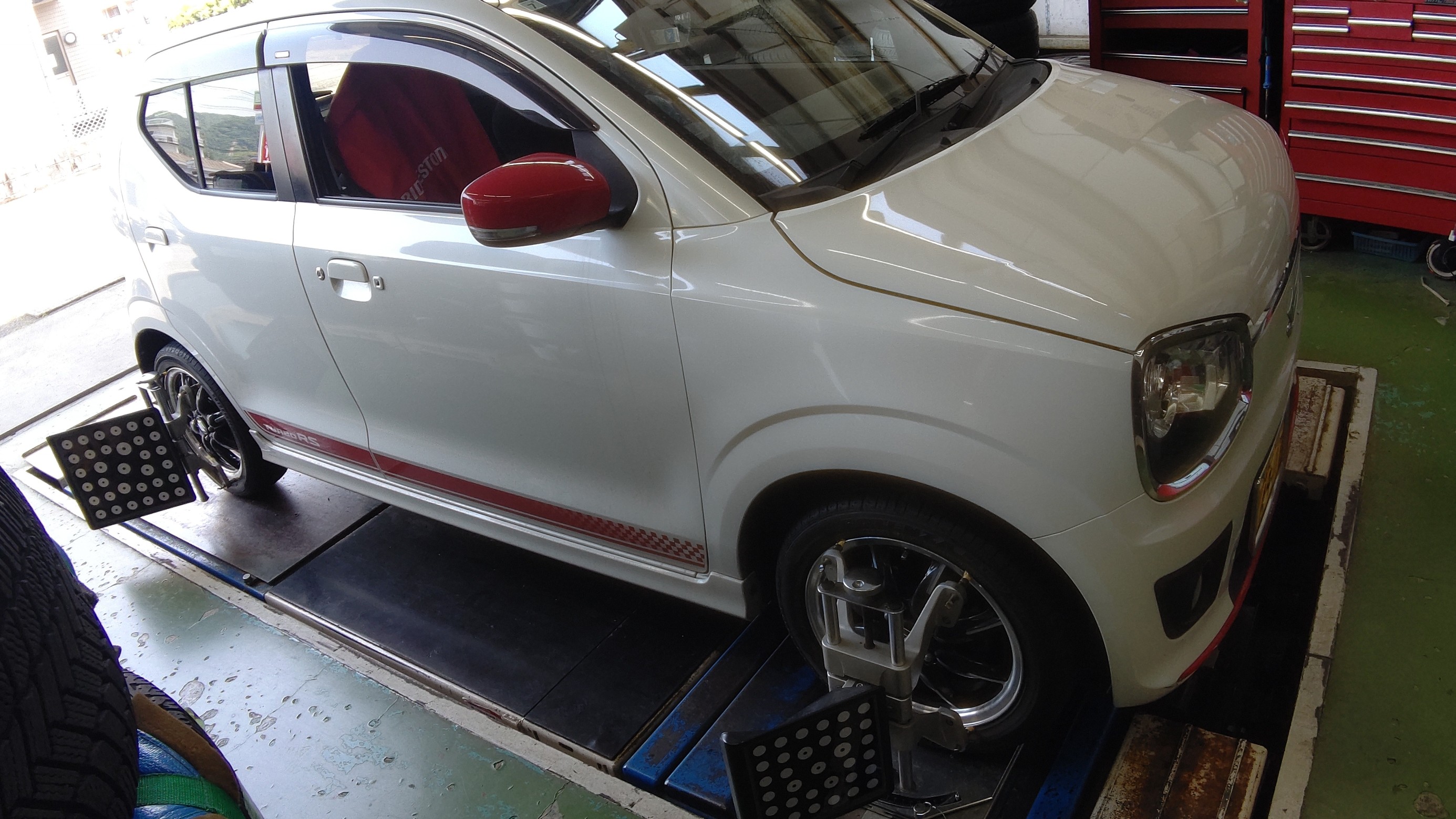今回は、いつもご利用されているお客様からの依頼でスズキ アルトターボRSのタイヤ購入取付作業とアライメント測定調整作業をさせていただきました。