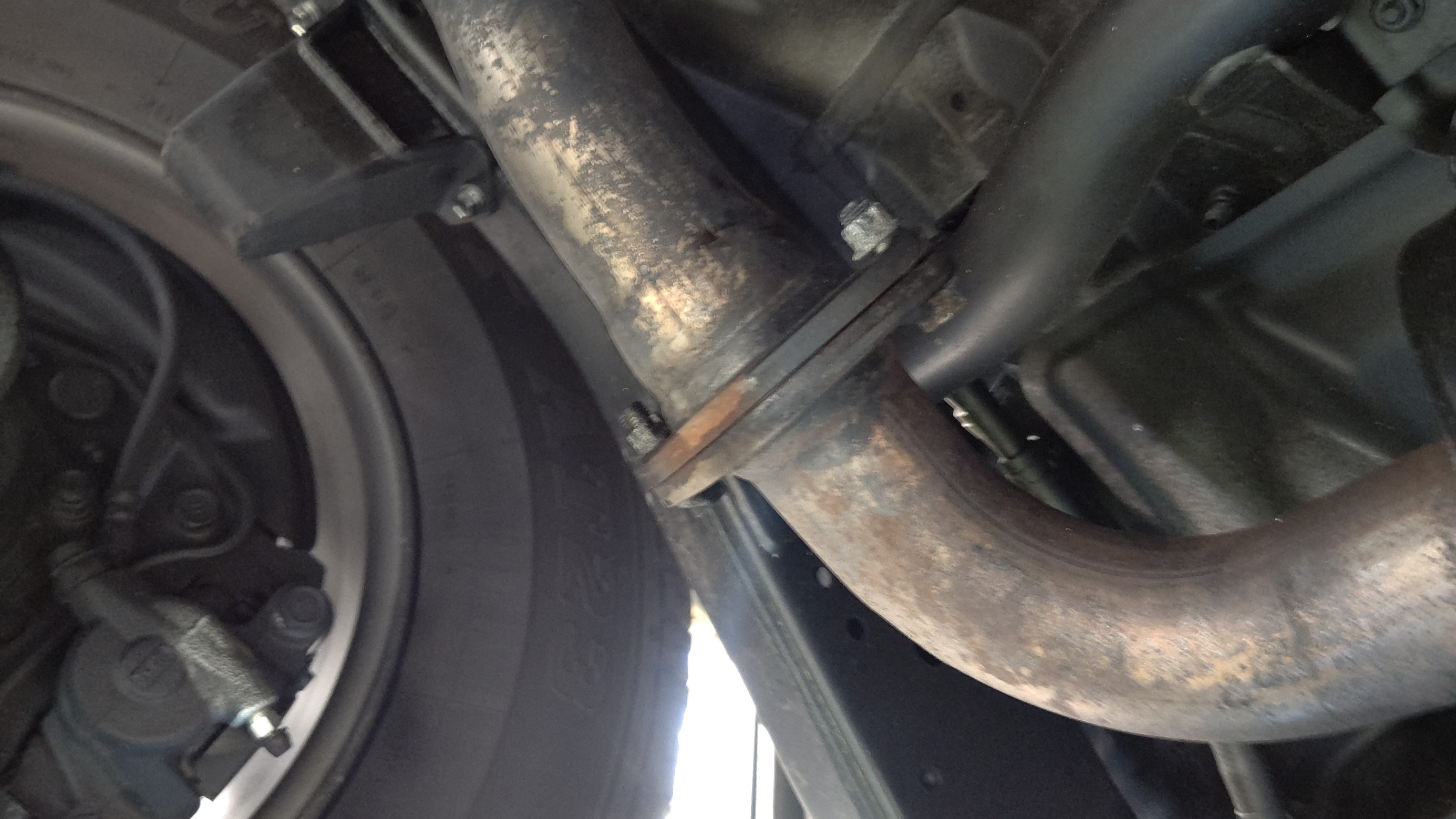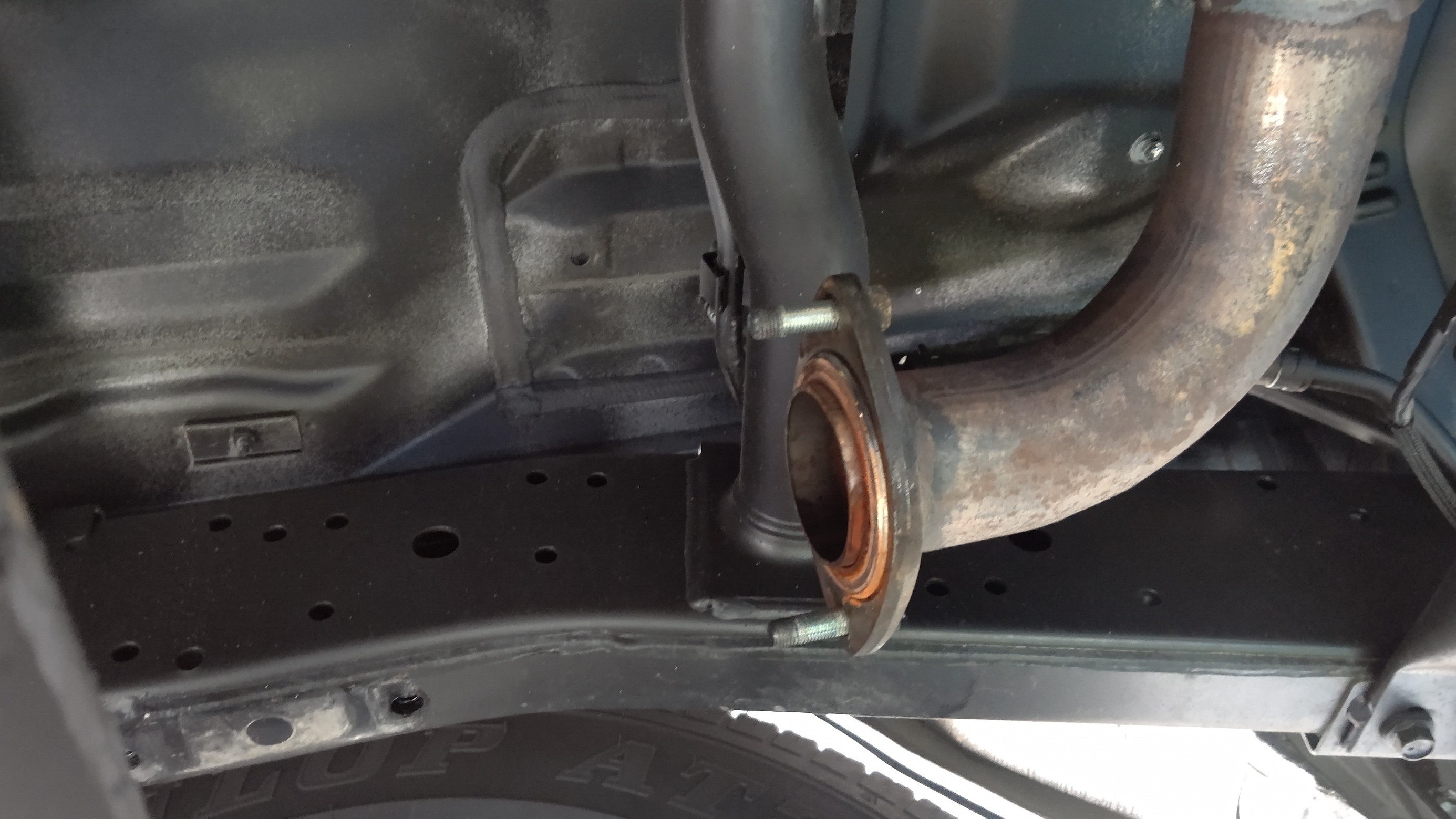 と取り外して、新しいタイヤマフラーを取付しますよ。