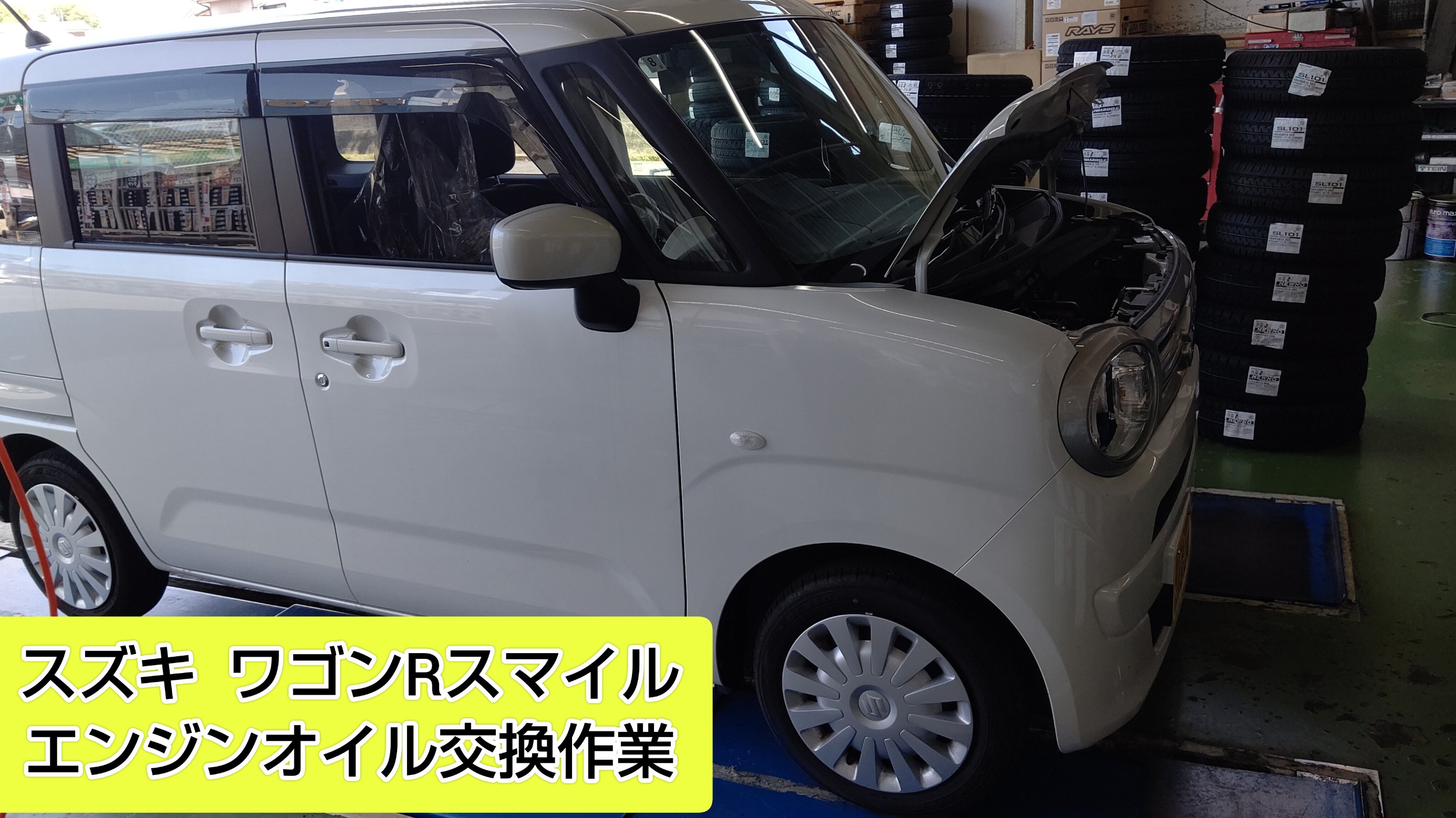 タイヤ館岩国で、スズキ ワゴンRスマイルのエンジンオイル交換作業をさせていただきました。