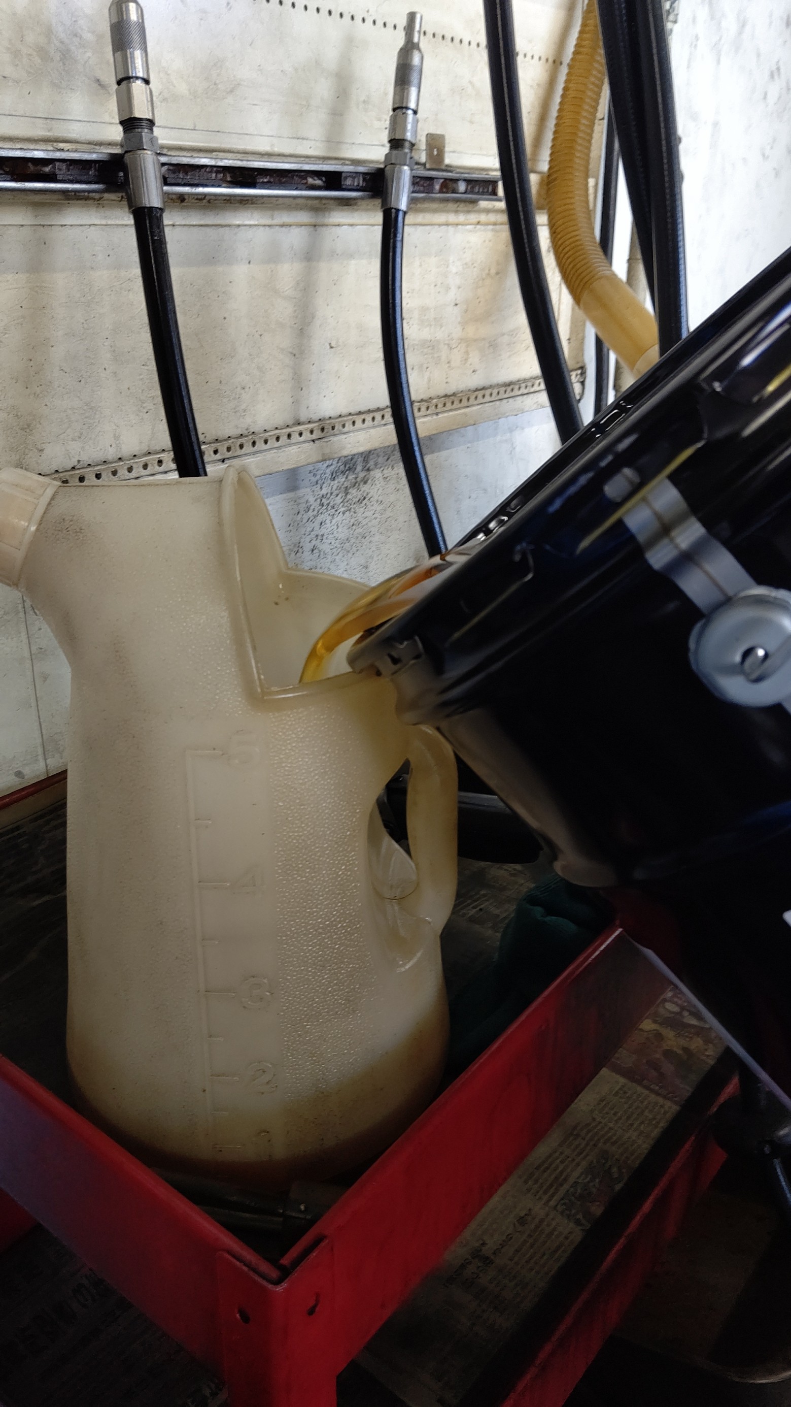 エンジンオイルを注入して、オイルフィラーキャップを締めてエンジンを始動してドレンとフィルターを確認し、オイル量も確認して作業終了になります。