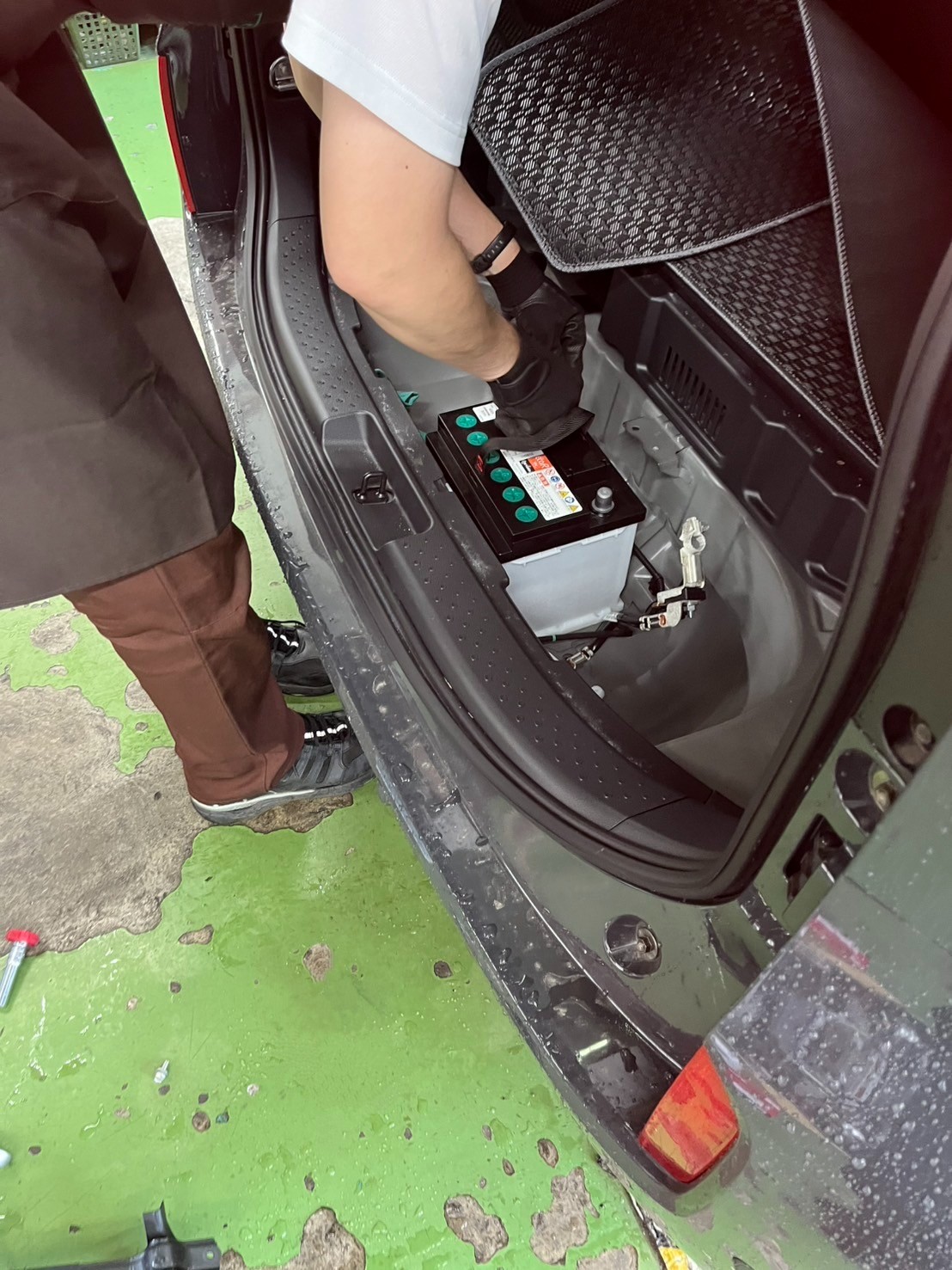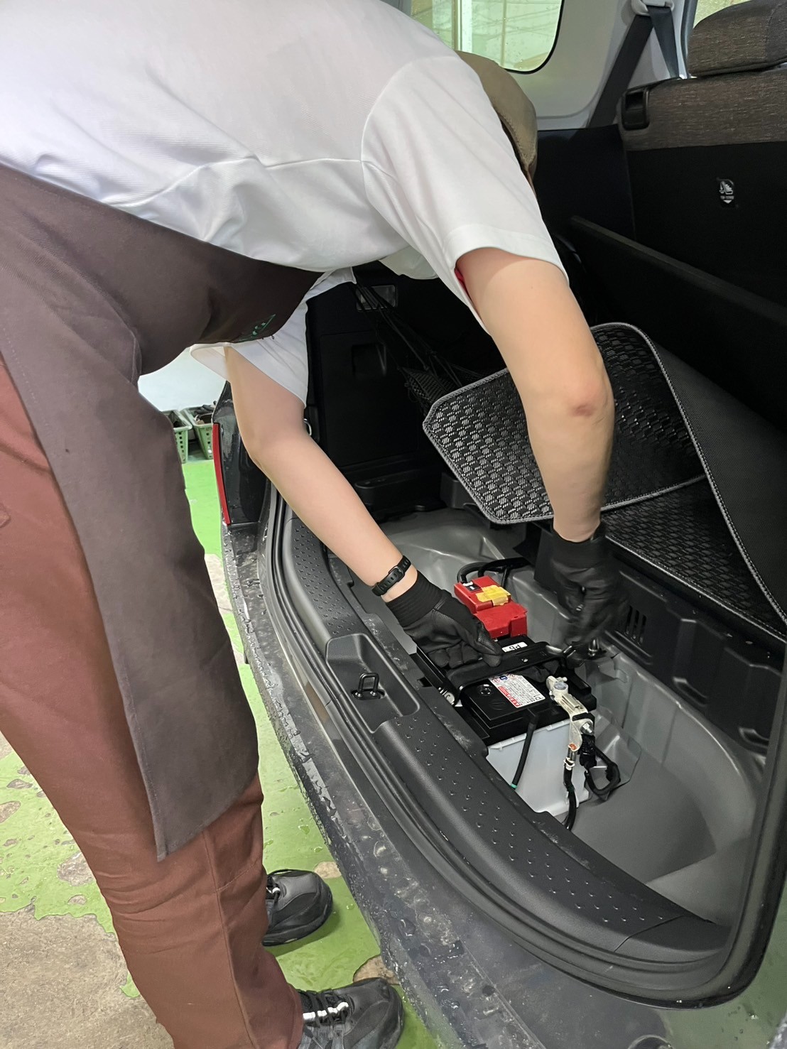 マットとパネルを外しての作業になります。