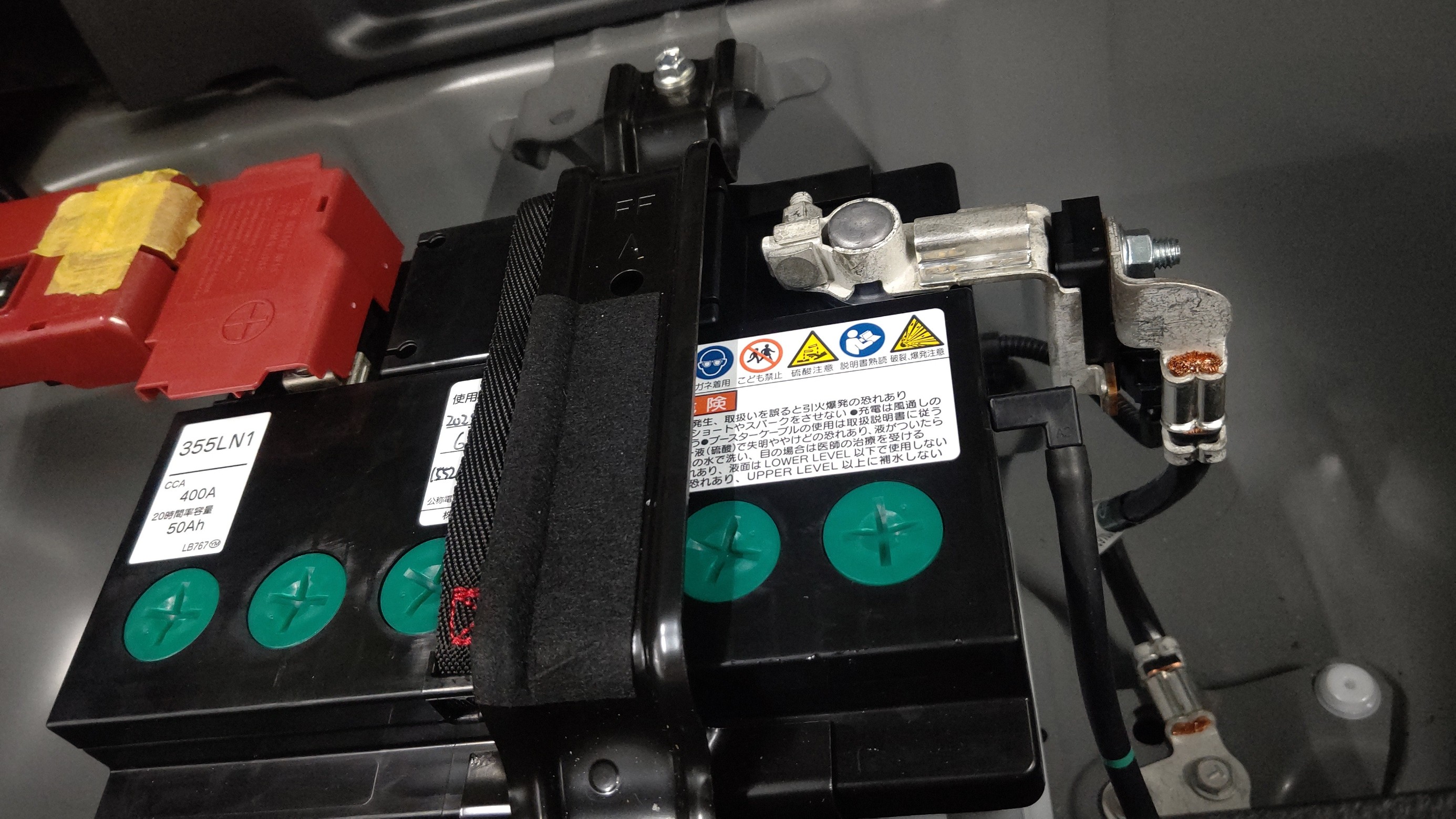 ステーを取付しバッテリーを固定してバッテリー交換は終了です。