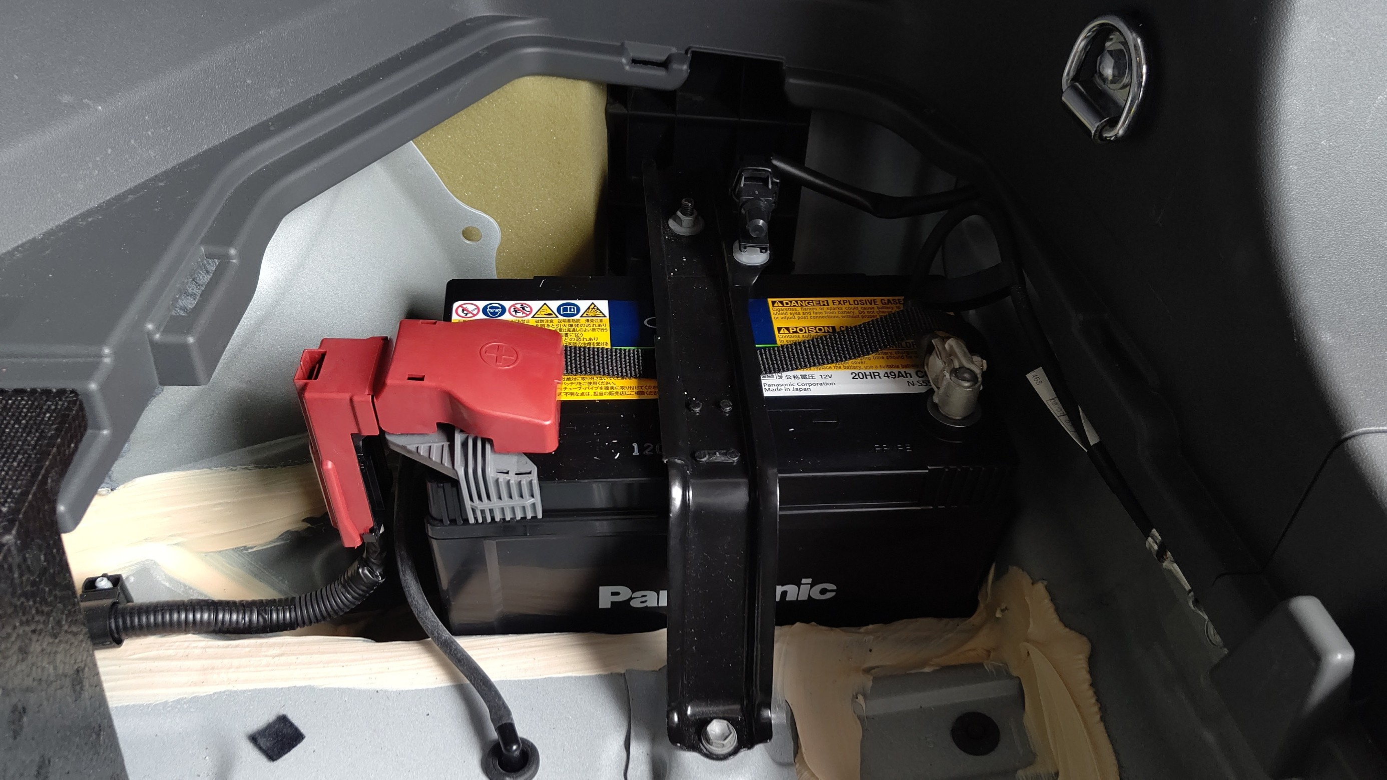 トランクの下にあるハイブリッド車では必要な専用の補機バッテリーとなっております。