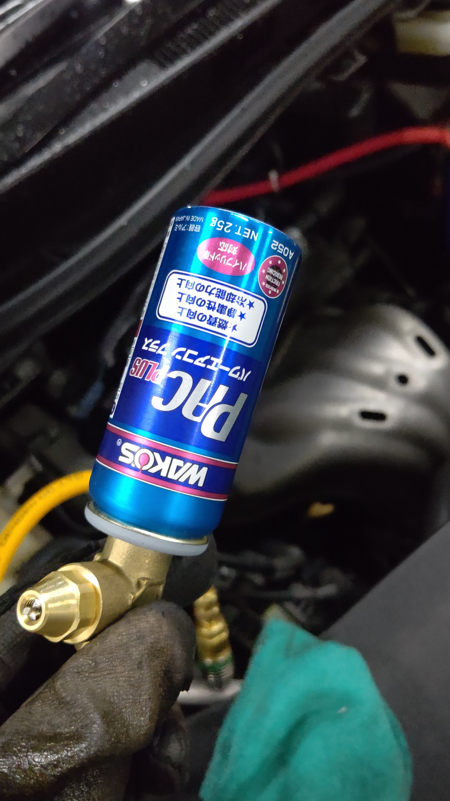 当店では、カーエアコンのメンテナンスとしてワコーズのパワーエアコンプラスの施工をおすすめしております。