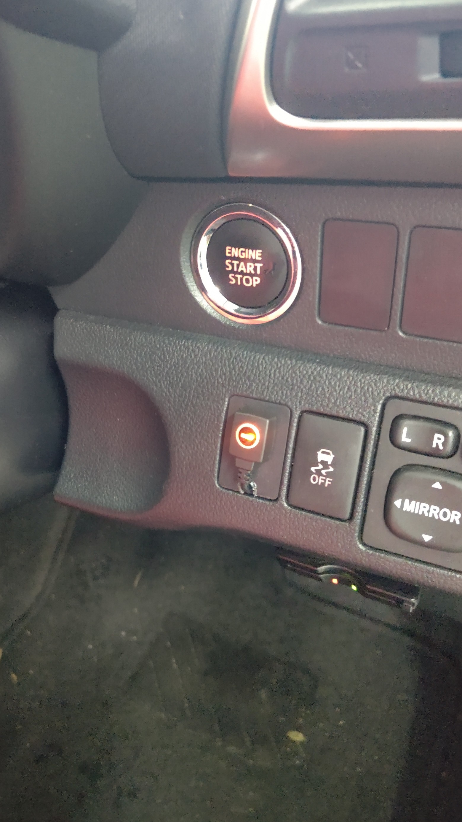 アクセル見守り隊を操作とお知らせのスイッチ&ランプをプッシュスタートスイッチの下側に設置しました。