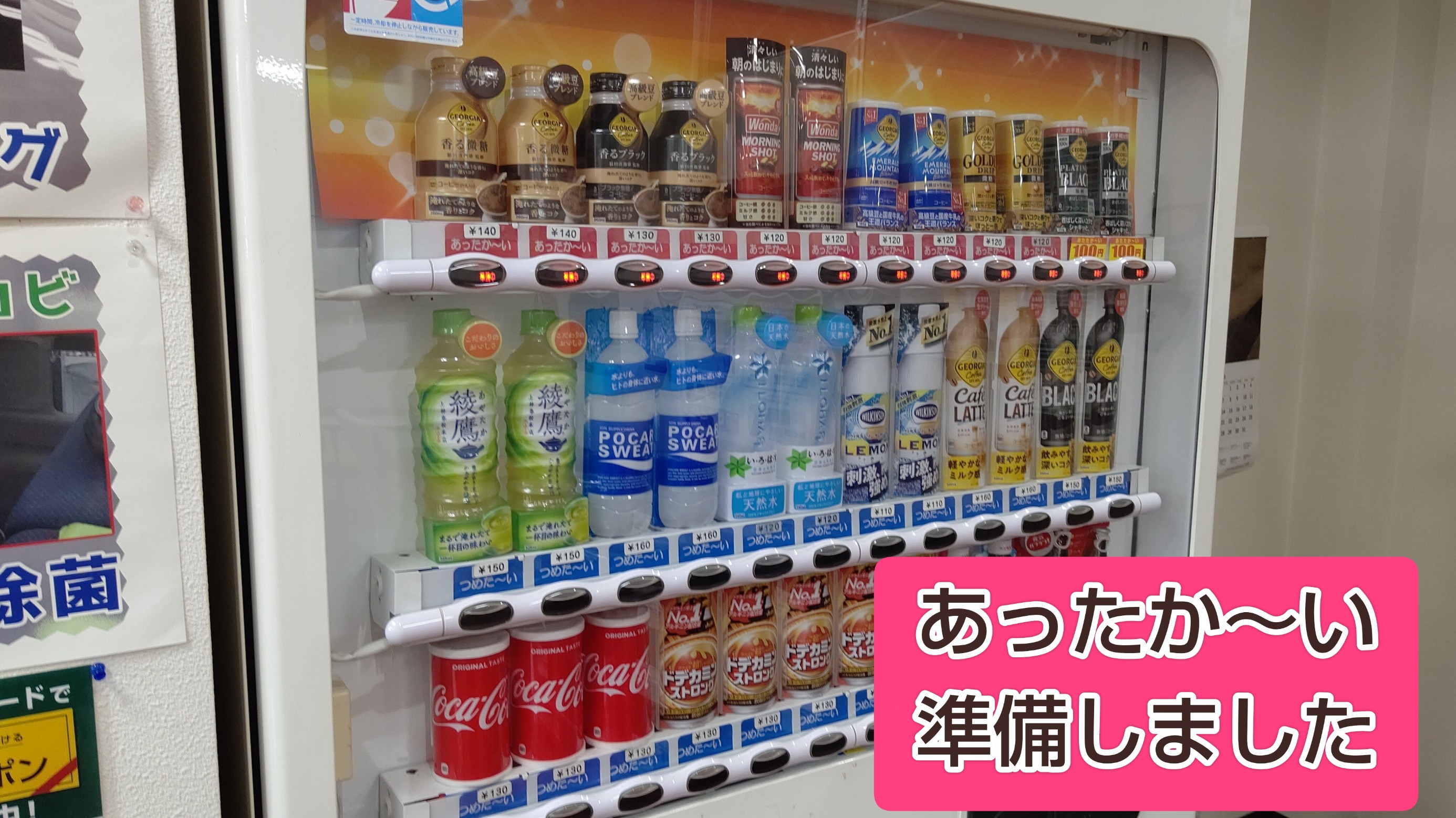 タイヤ館岩国には待ち合いスペースに自動販売機がありますが、去年よりも約1ヶ月早くHOTが並びました!!