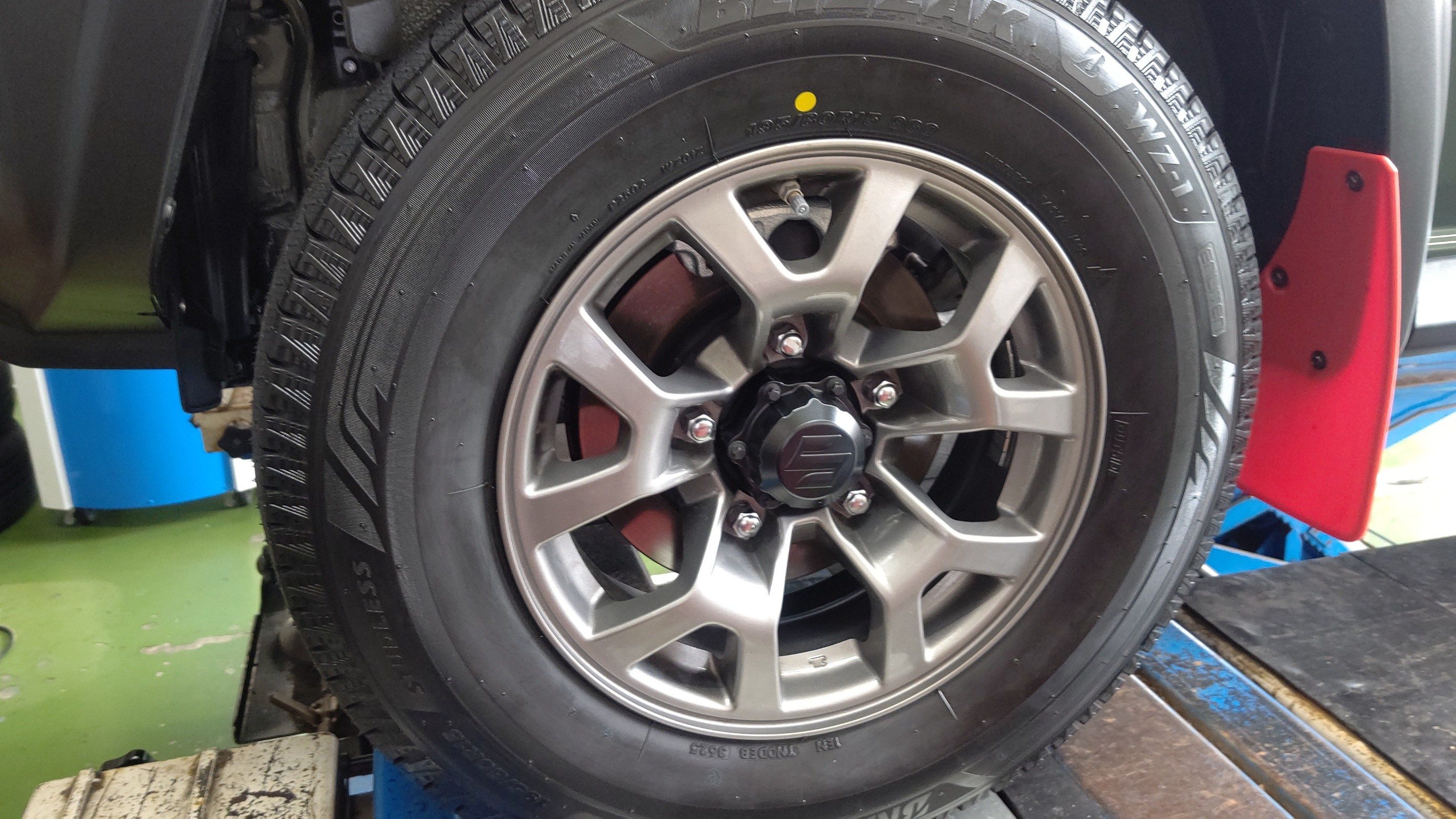 タイヤ館岩国で、スズキ ジムニーノマドにスタッドレスタイヤを購入取付作業をしました。