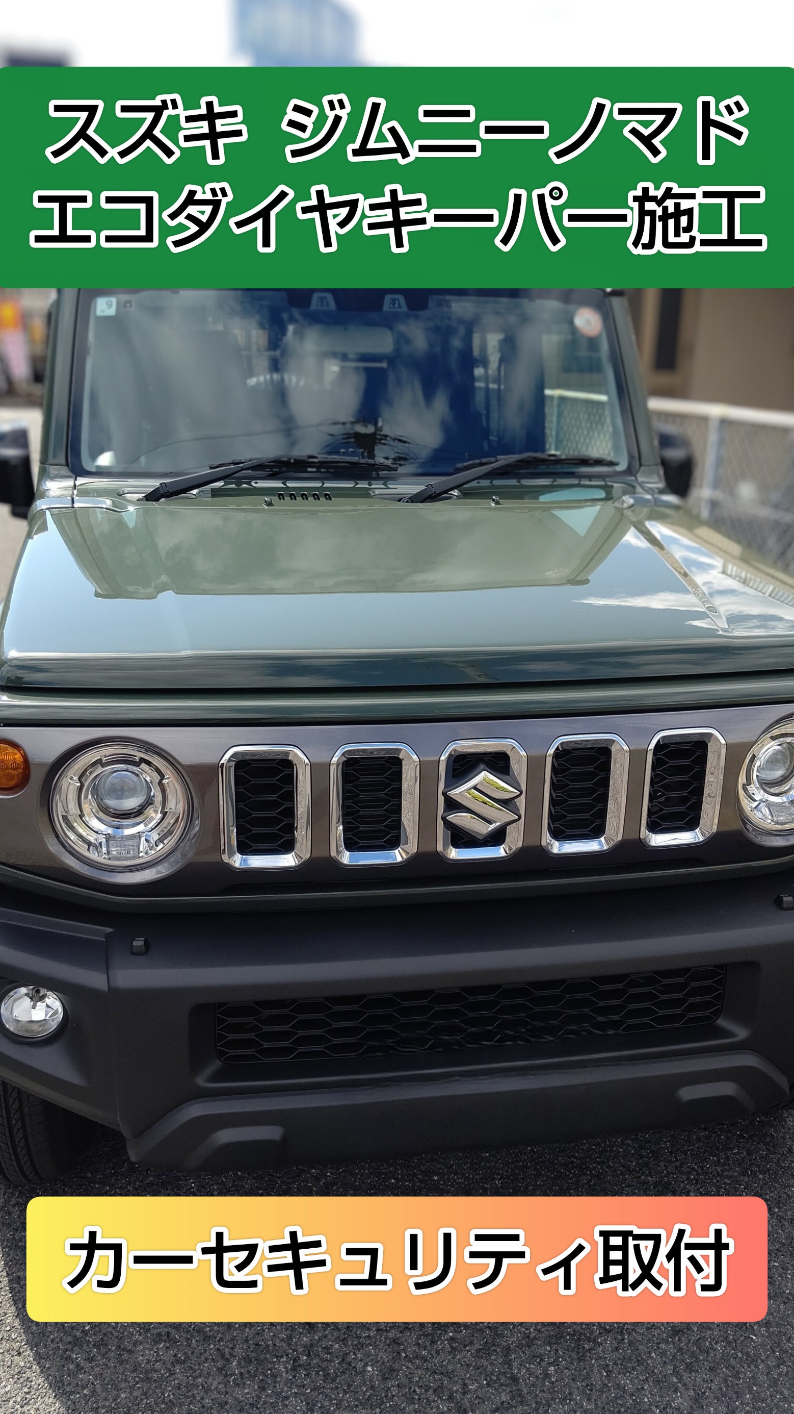 タイヤ館岩国で、スズキ ジムニーノマドにカーセキュリティ購入取付作業と他店でエコダイヤキーパー施工をさせていただきました。