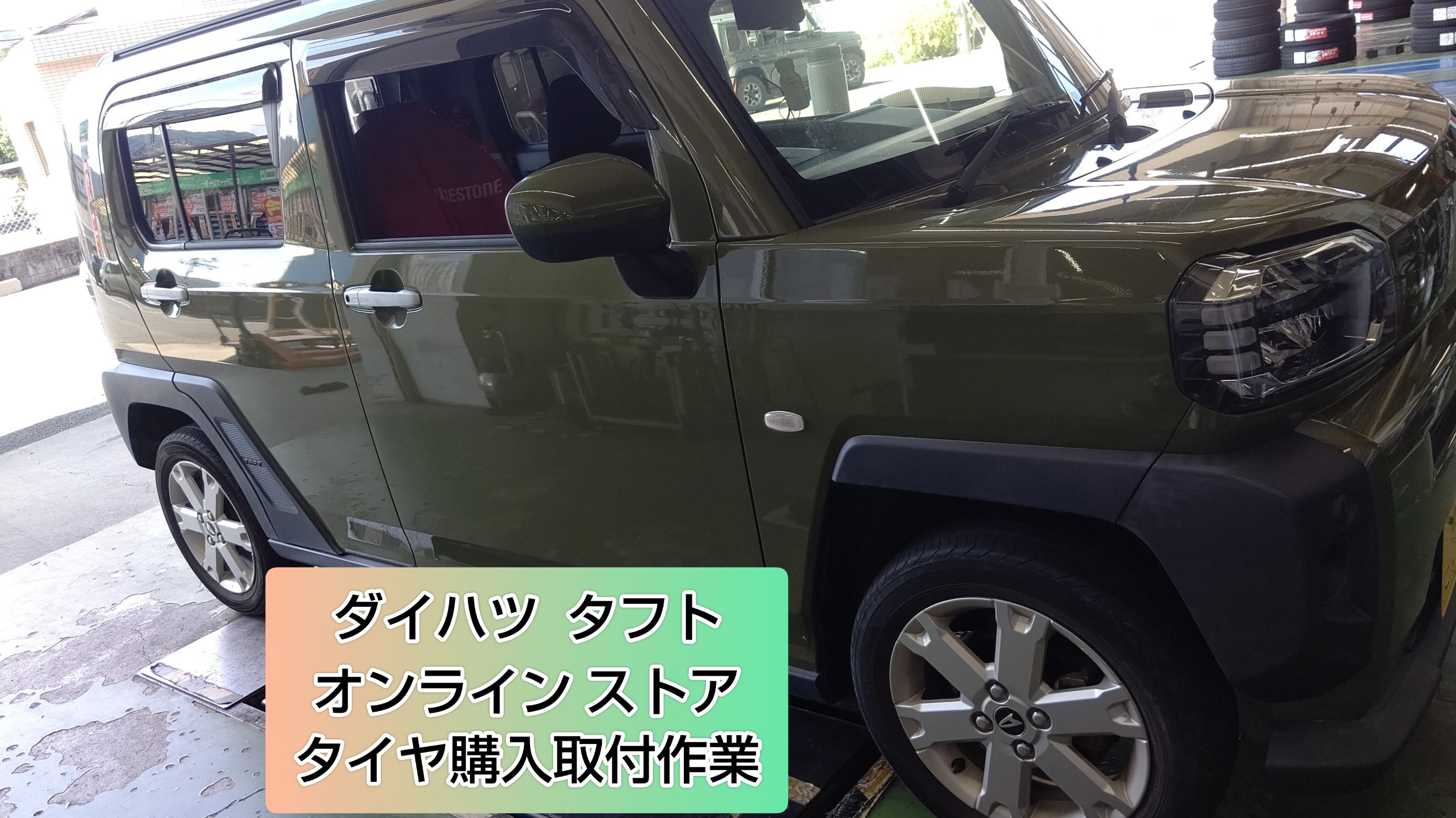 今回は、ブリヂストン タイヤオンラインストアからダイハツ タフトのお客様の依頼でタイヤ取り付け作業をさせていただきました。