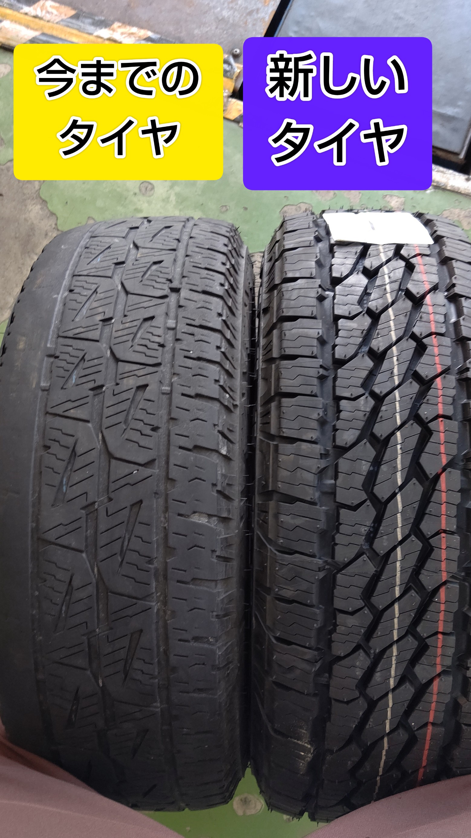 今までのタイヤと比べてみます。