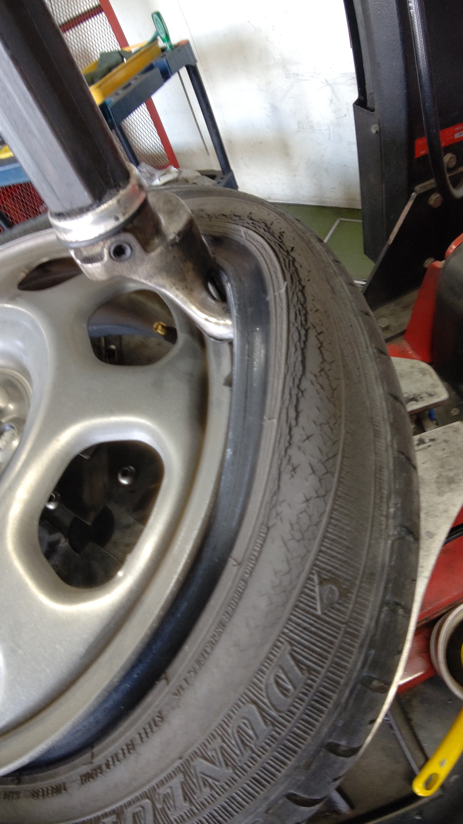 車体からタイヤホイールを外して今までのタイヤを外していきます。