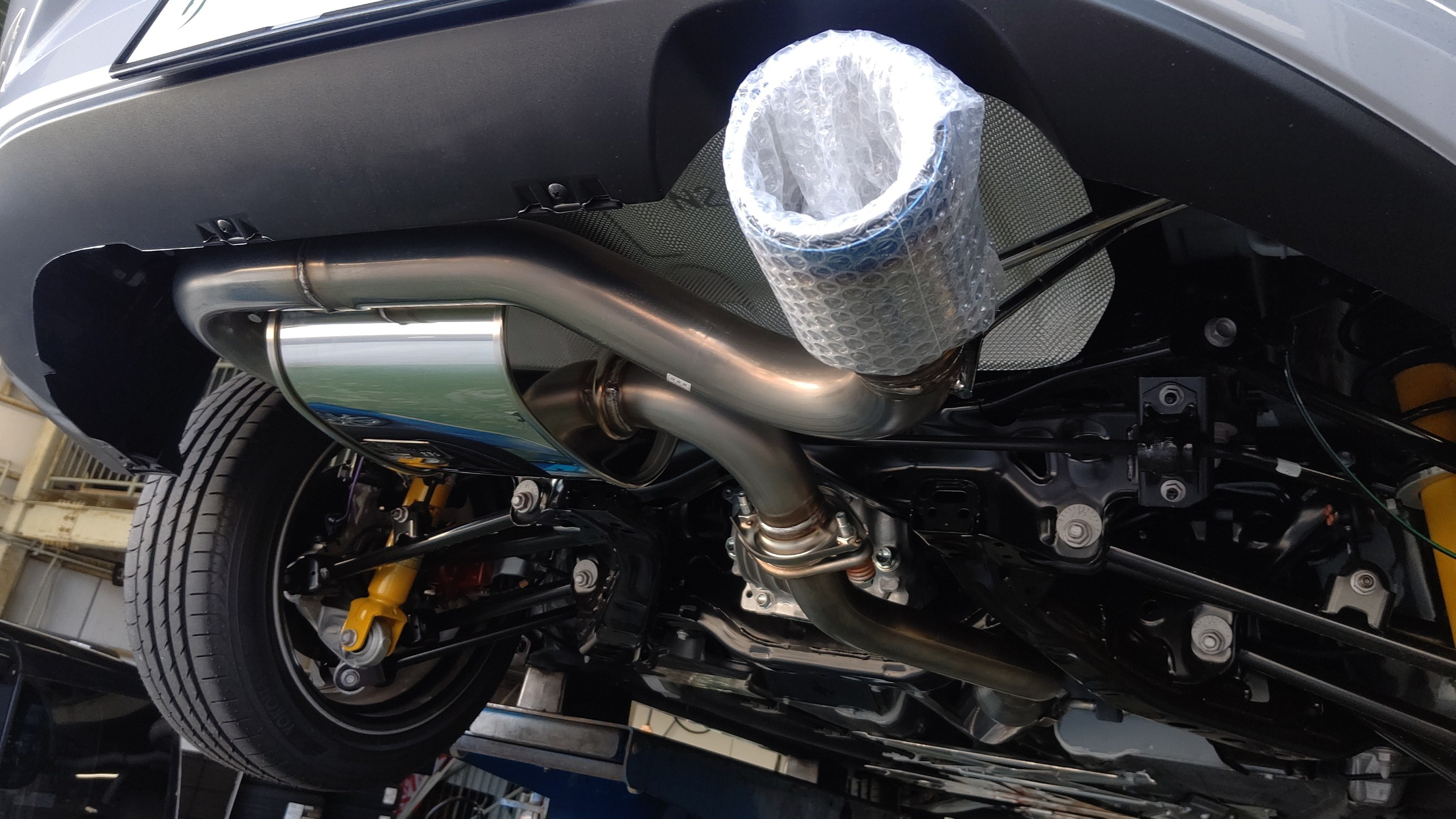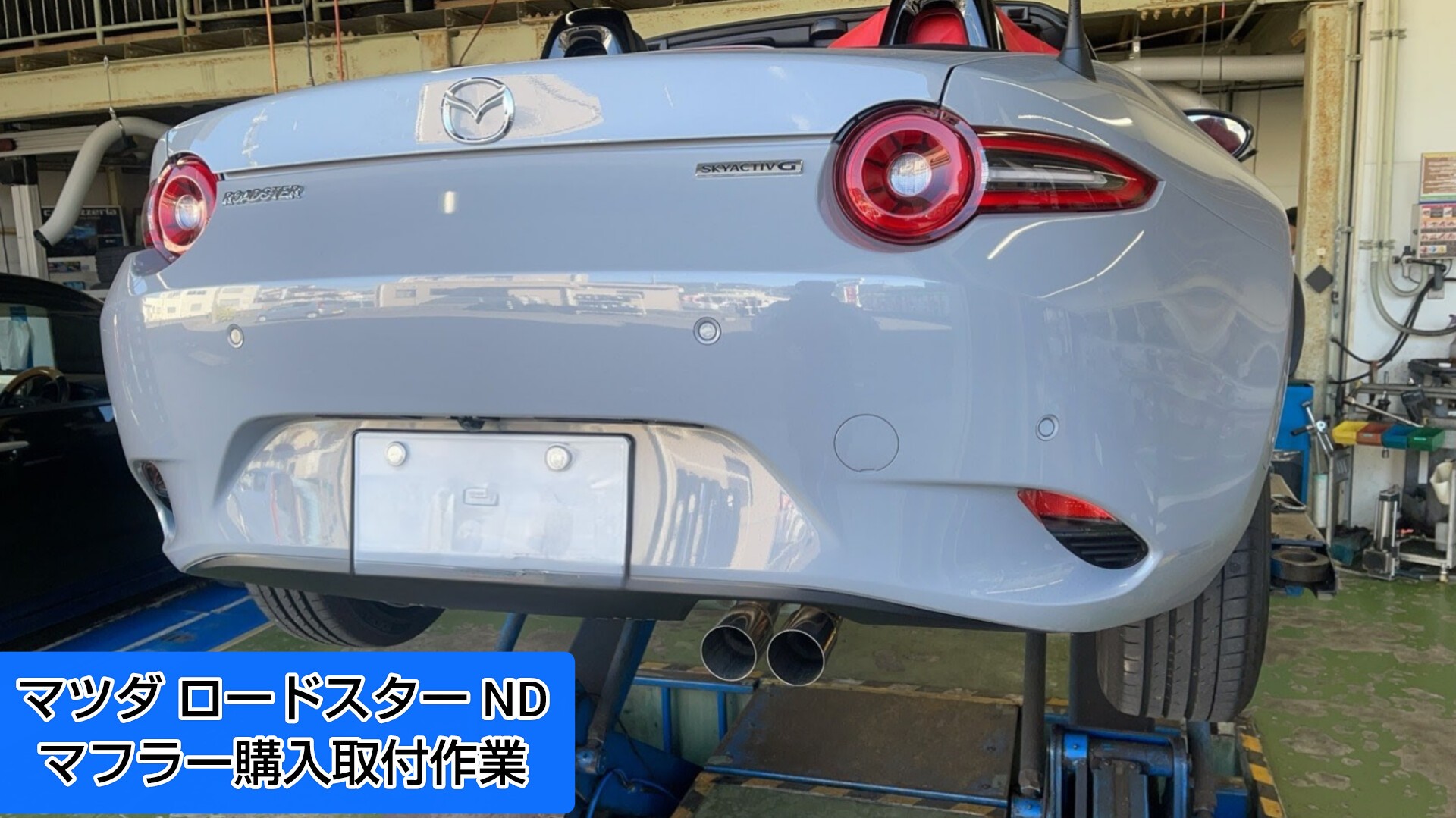 今回はいつもご利用されているお客様らの依頼で、増車したマツダ ロードスターND型の車検対応マフラーの販売取付作業をさせていただきました。