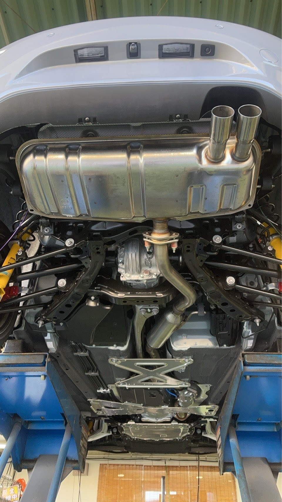 まずは、リフトアップして現在の下廻りを見てみます。