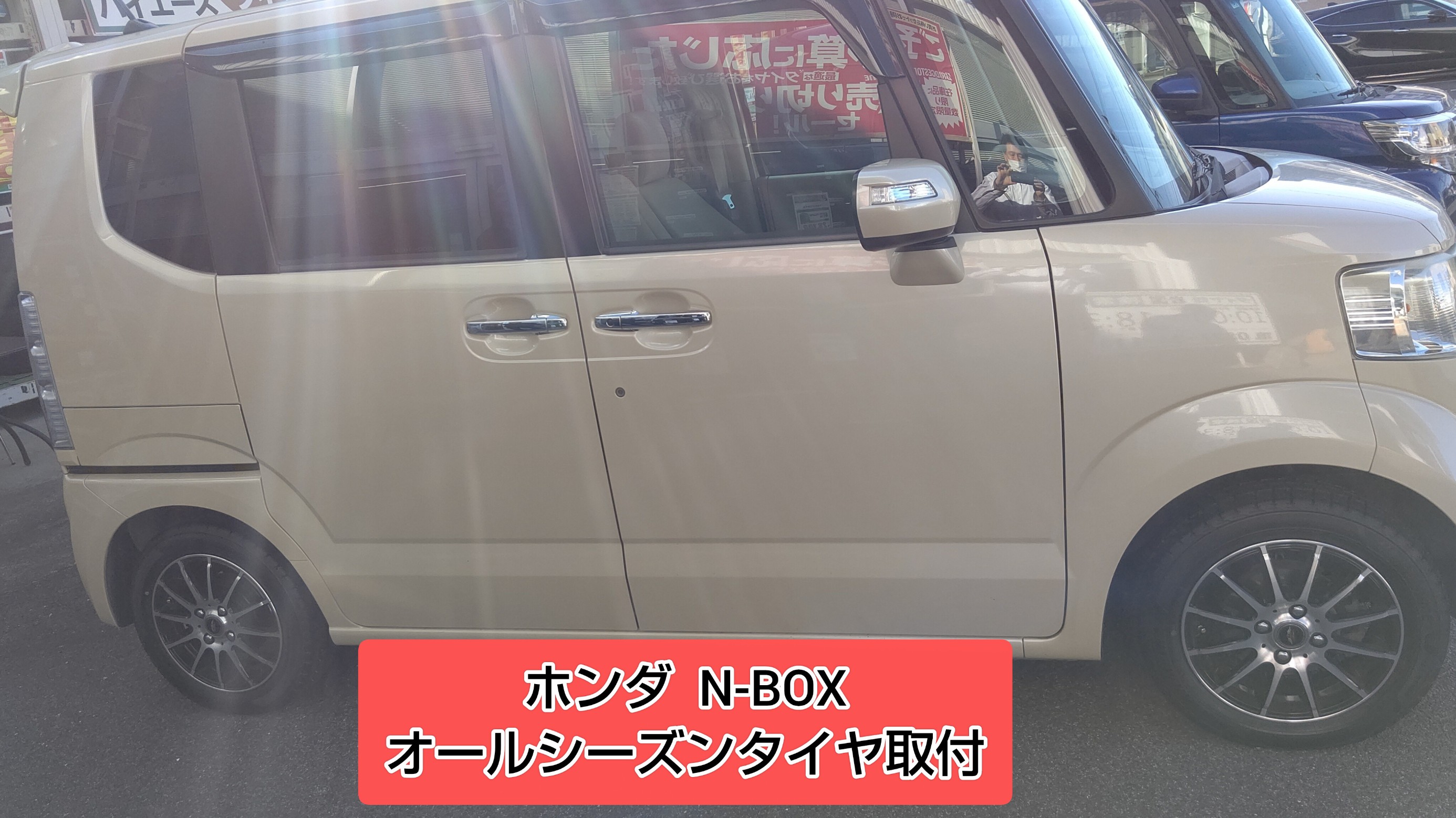 今回は初めて来られたお客様からの依頼でホンダ N-BOXにオールシーズンタイヤの購入取付作業をさせていただきました。