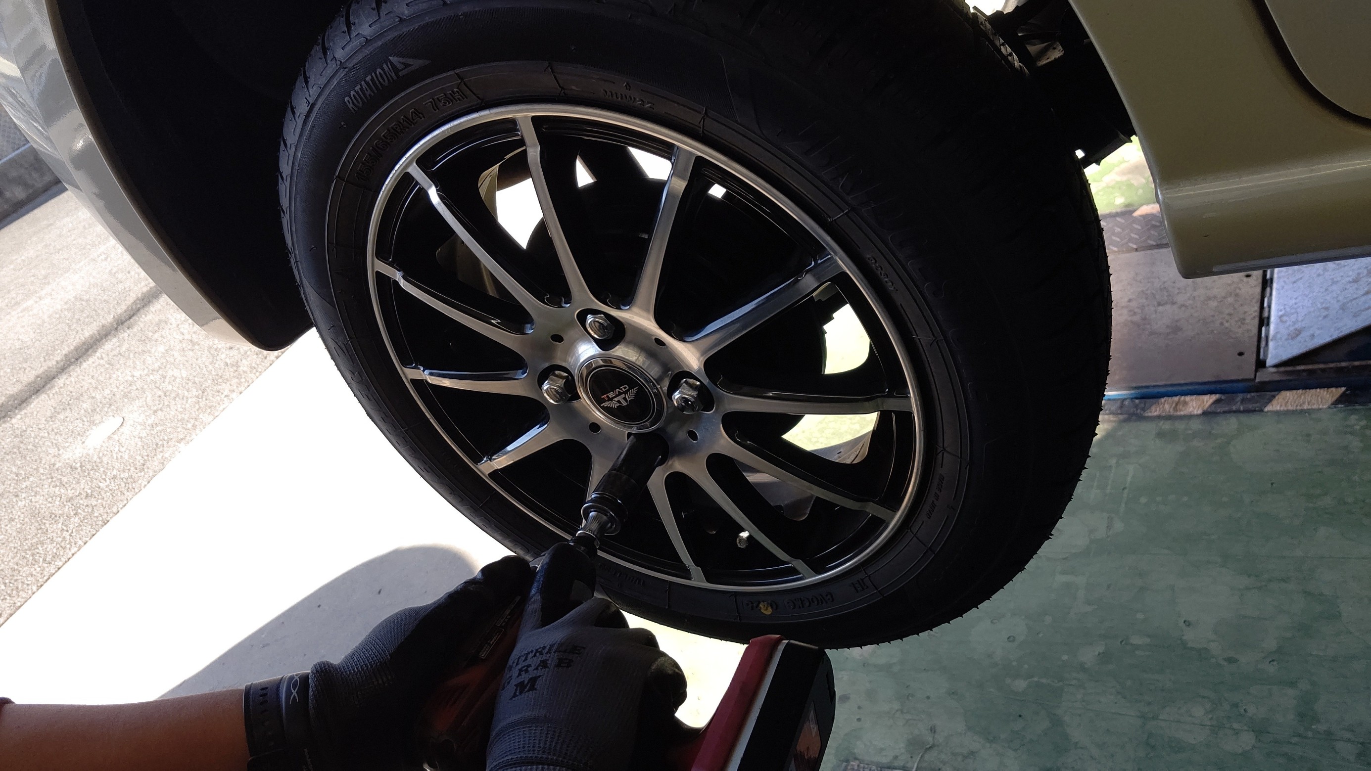 今までのタイヤからオールシーズンタイヤへ組み換え作業をして取付していきます。