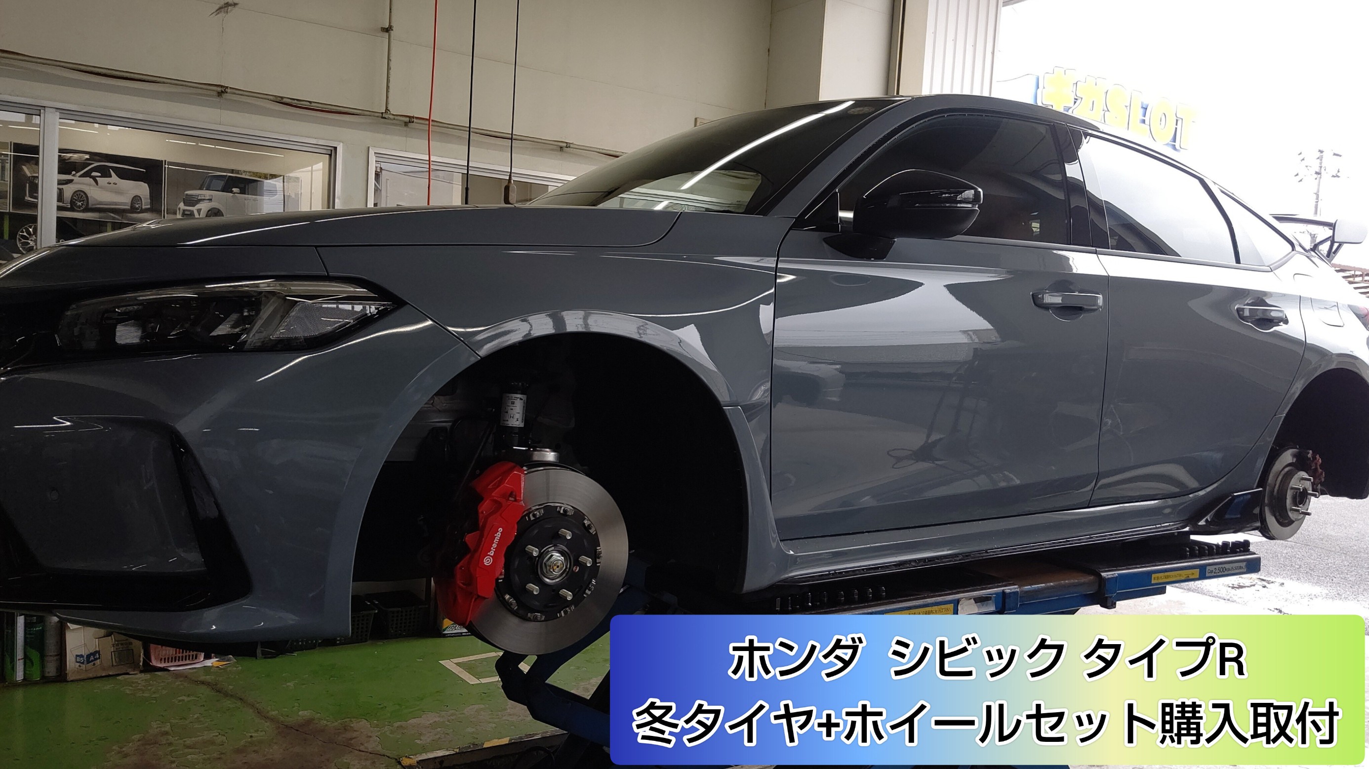 今回はいつもご利用されているお客様がホンダ シビックタイプR(FL5)に乗り換えたとの事でスタッドレスタイヤとホイールセットの販売取付作業をさせていただきました。
