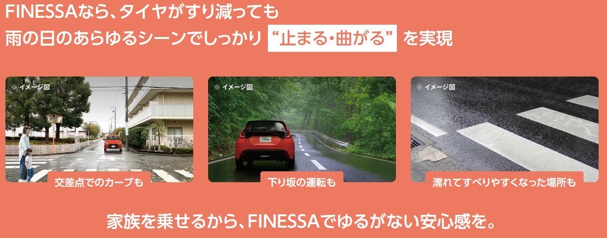 特にFINESSAは雨の日の性能を特に重視し、エコピアシリーズより静粛性にも優れています。