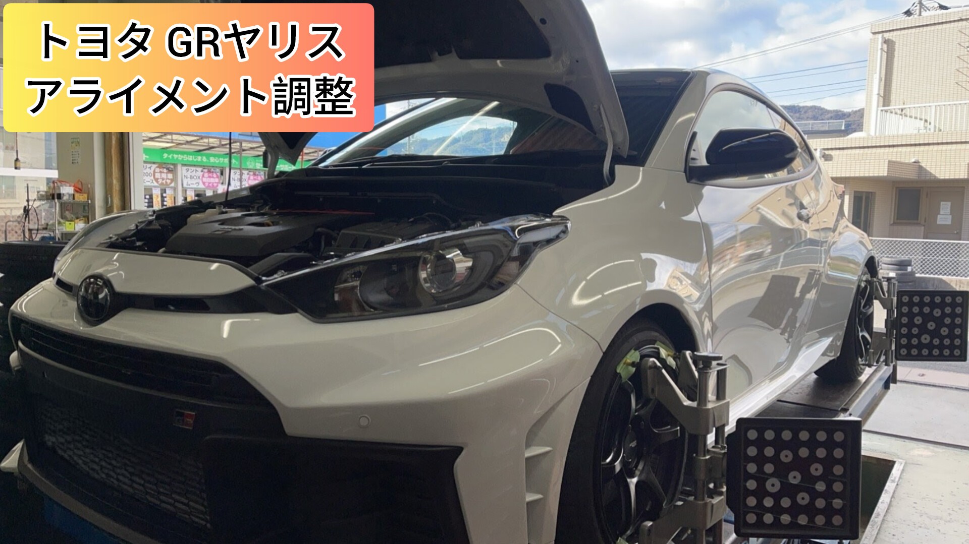 タイヤ館岩国で、トヨタ GRヤリス(25式)にアライメント測定調整作業をさせていただきました。