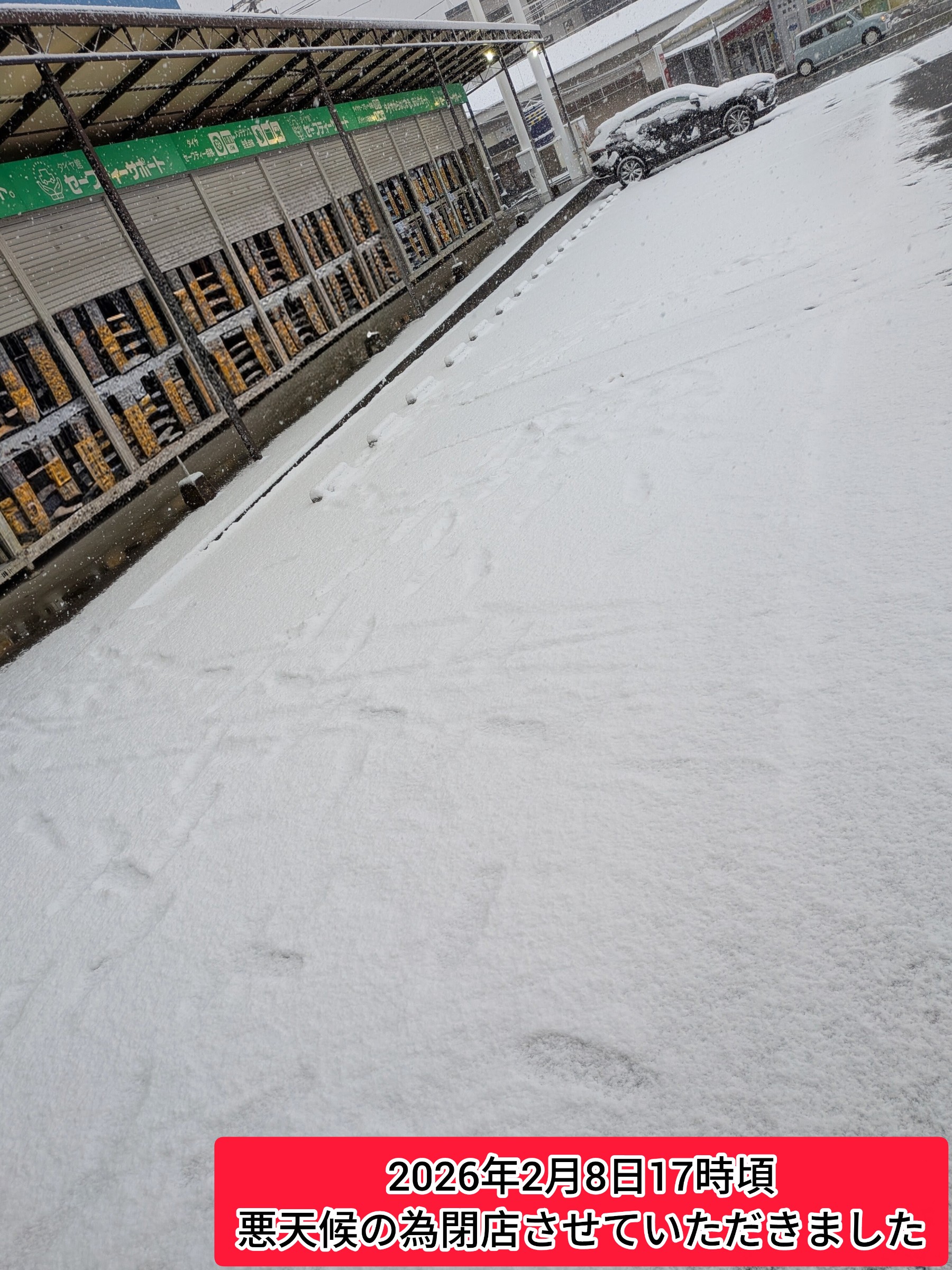 17時作業でご予約のお客様から積雪で来られないとご連絡があったため、従業員の帰宅困難の可能性が高くなったので早めに閉店させていただきました。