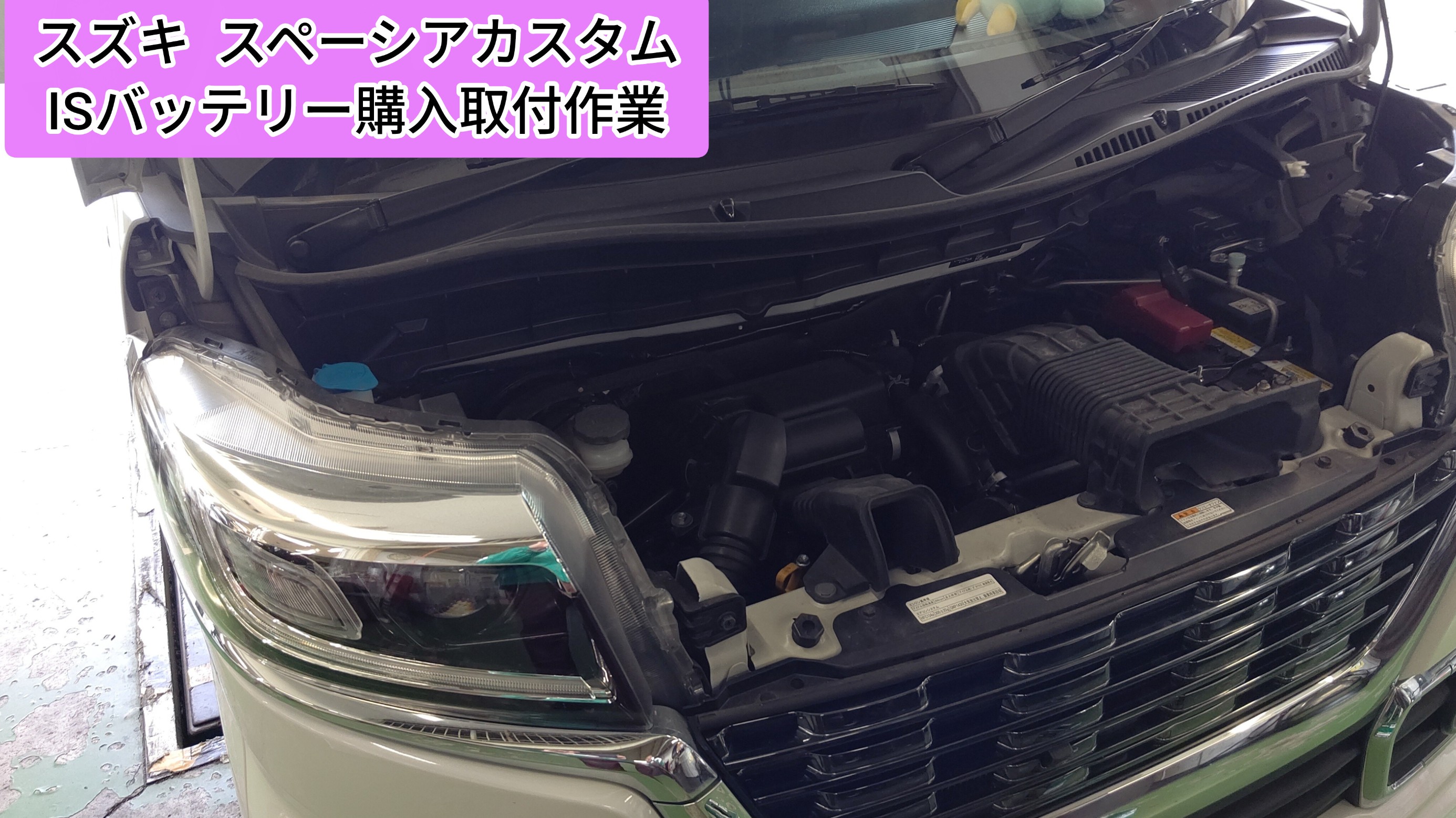 今回はいつもご利用されているスズキ スペーシアカスタムのお客様からの依頼でアイドリングストップバッテリーの購入取付作業をさせていただきました。