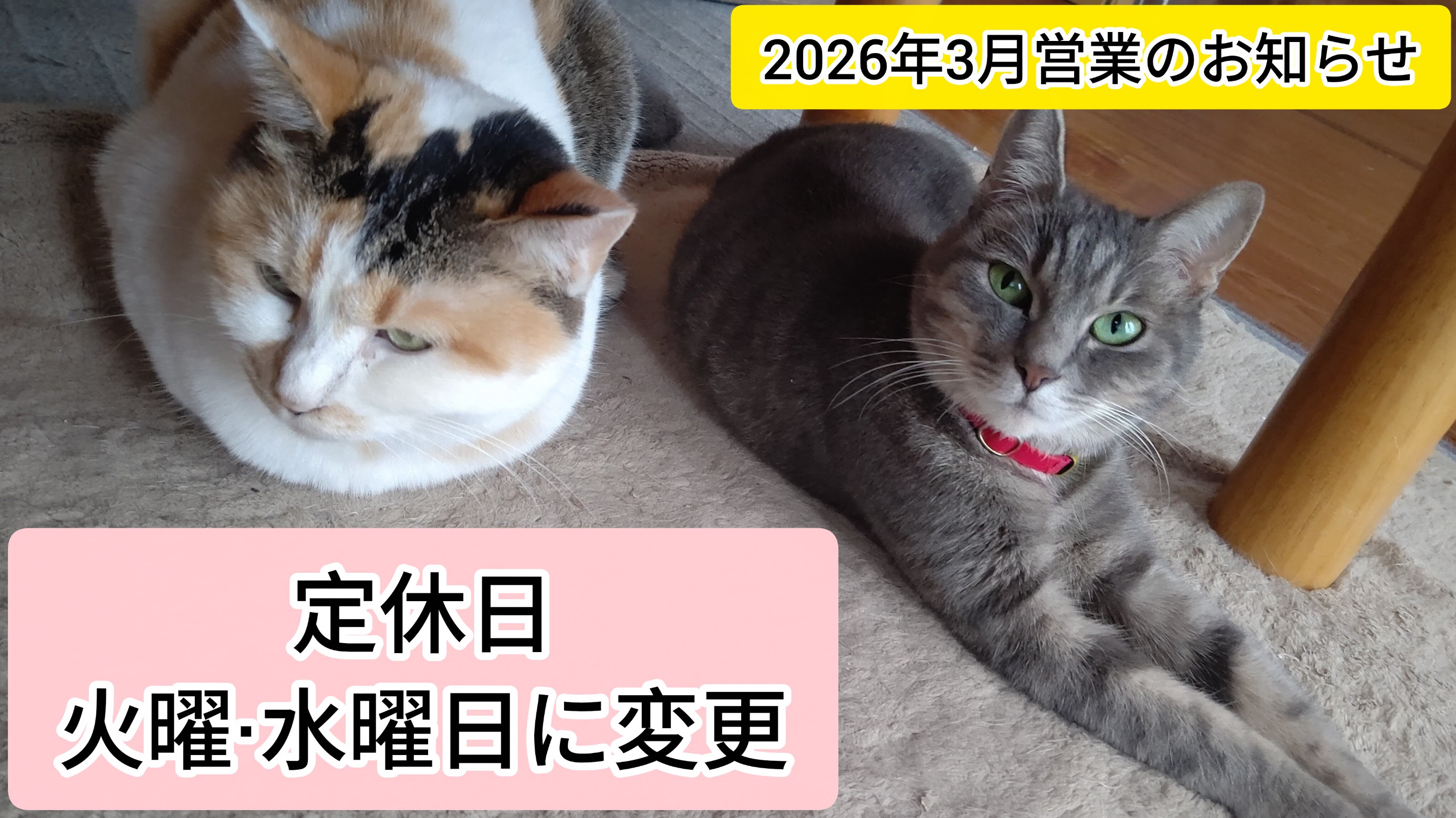 2026年3月の営業のお知らせになります。(定休日変更あり)
